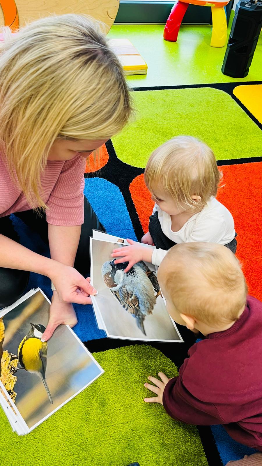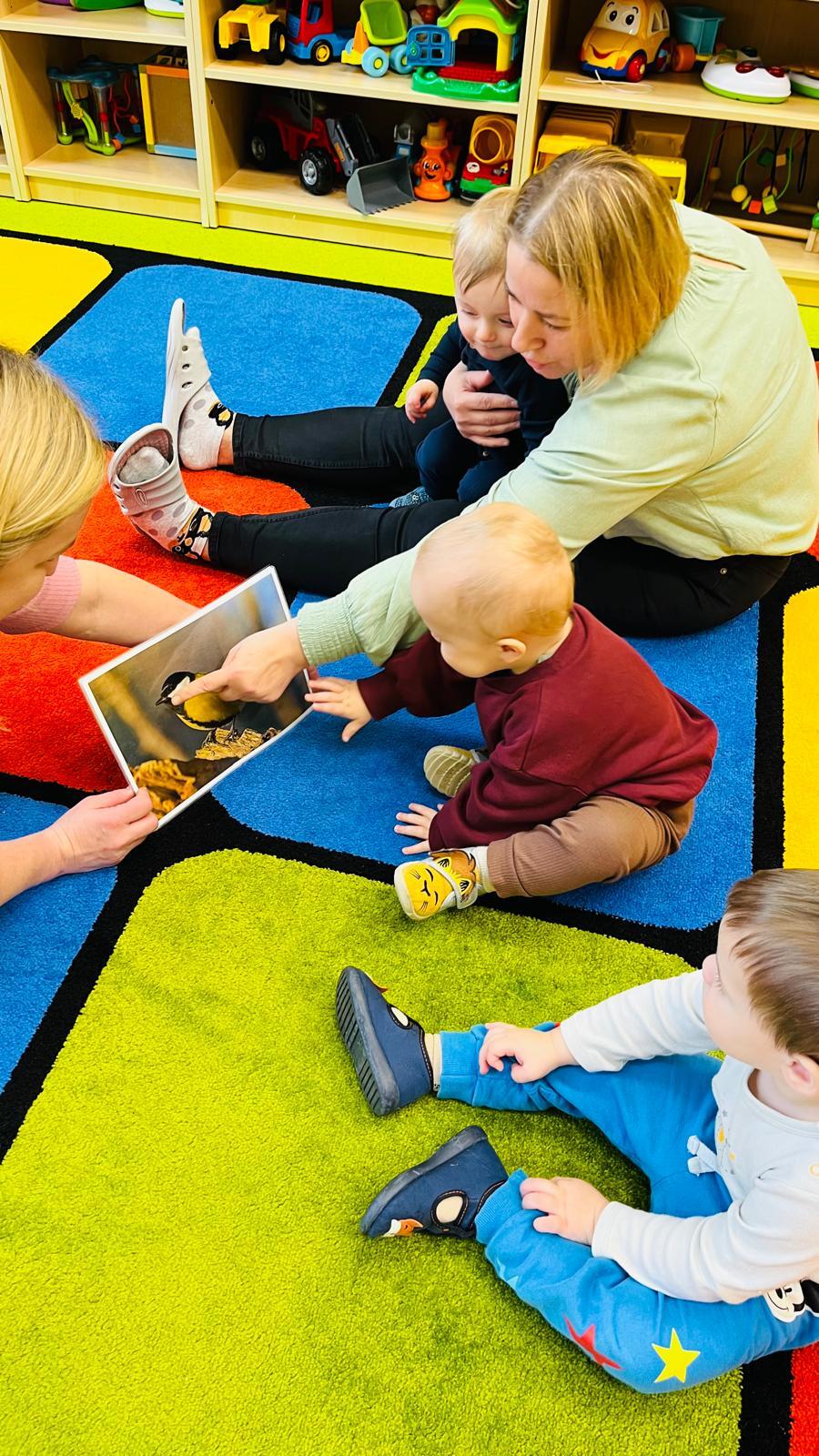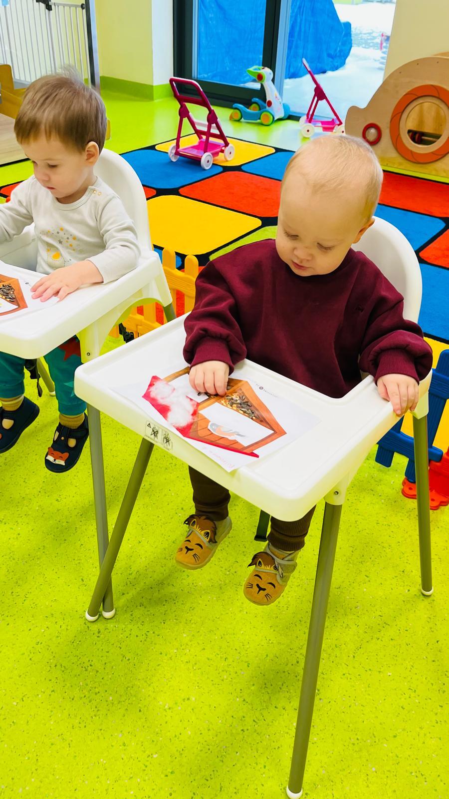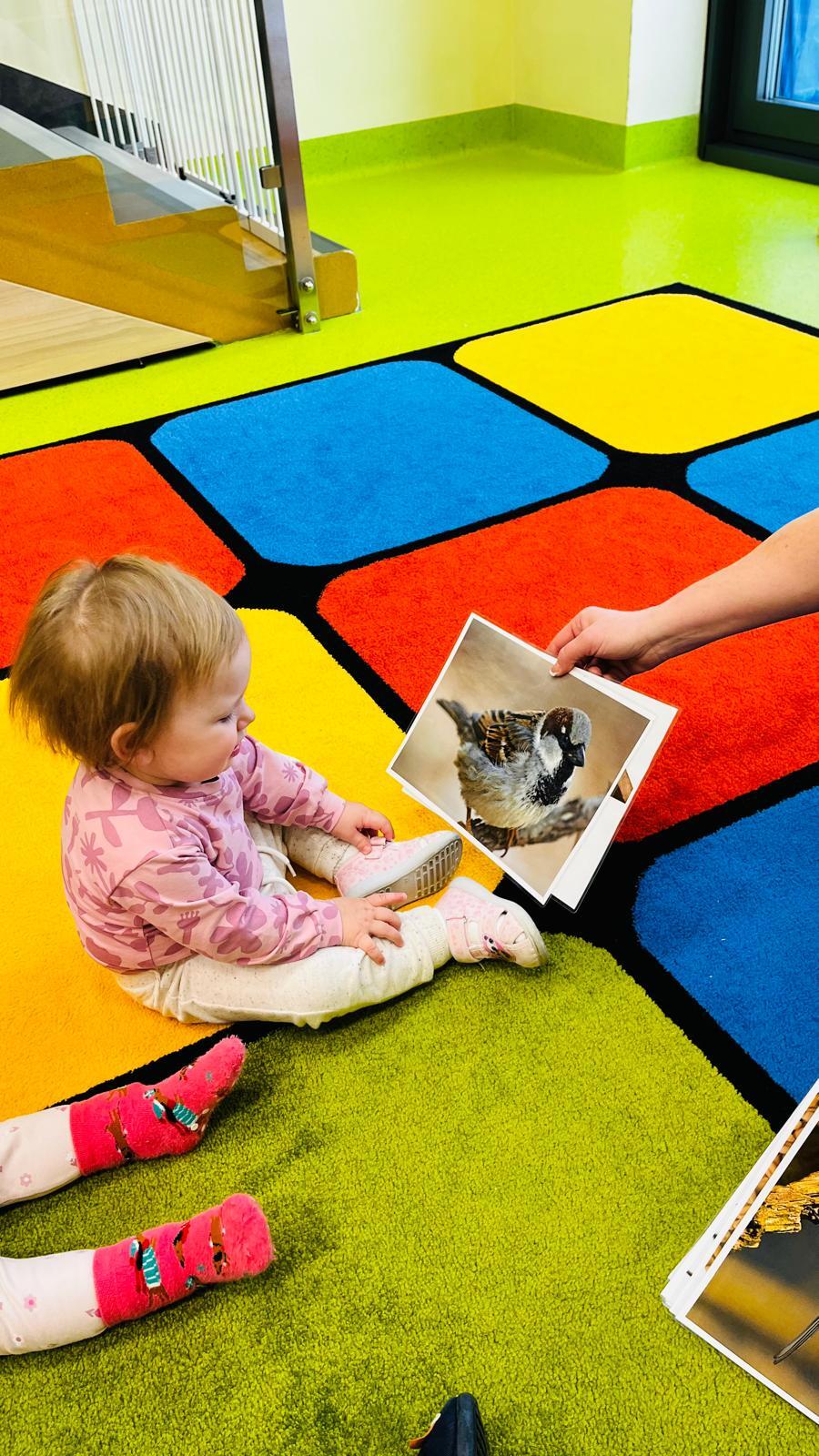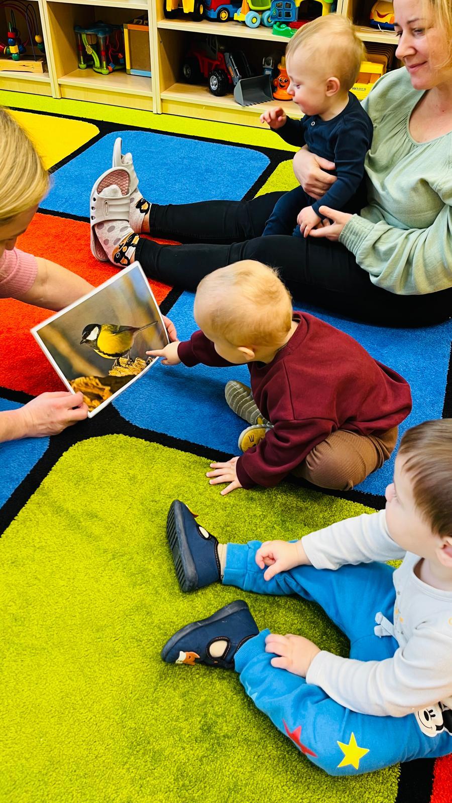 Poznajemy ptaki odwiedzające karmnik zimą, ich wygląd i charakterystyczne cechy. Słuchamy odgłosów ptaków i naśladujemy je w zabawie muzyczno-ruchowej „Fruwające wróbelki”. Rozmawiamy o tym, jak pomagać ptakom zimą. Czytamy utwór „Śniadanie wróbli”.