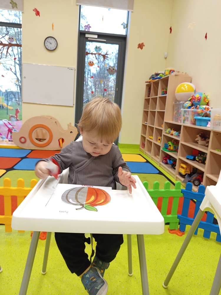 W dniu święta Dyni poznaliśmy kolor pomarańczowy i podjęliśmy próby wyklejenia sylwety warzywa z puzzli dwu-elementowych.