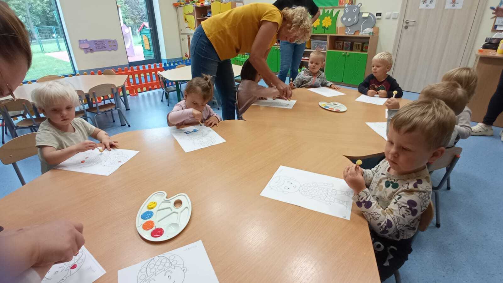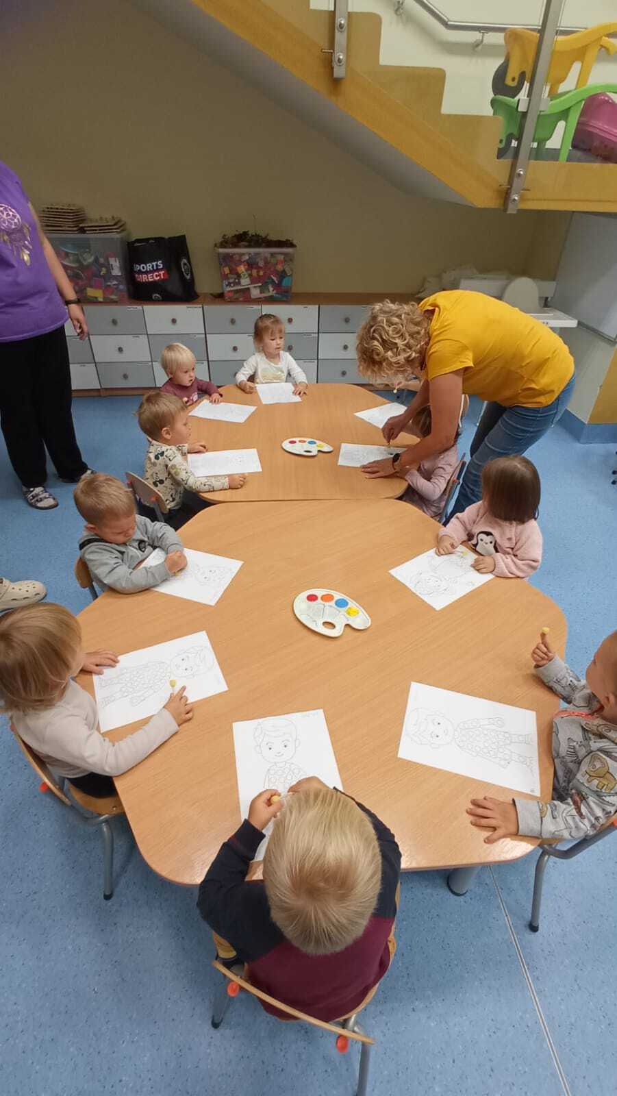 Z tej okazji nasze Myszki przygotowały dla chłopców piękne laurki oraz kolorowe rysunki przy pomocy farb i stempelków.