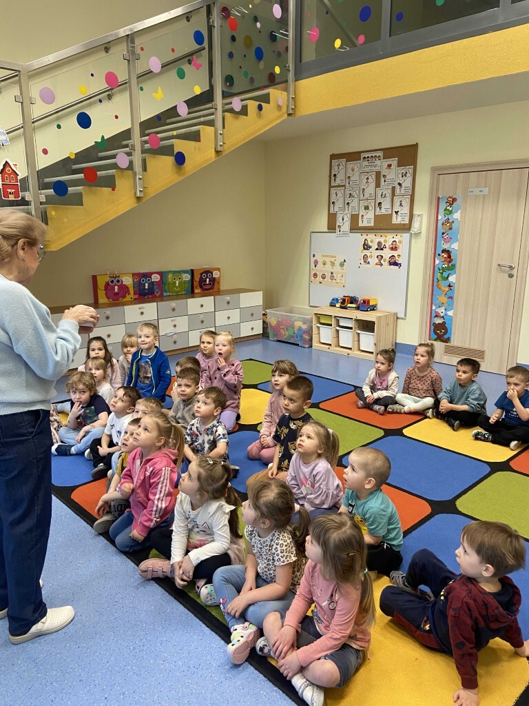 Dzieci z dużym zainteresowaniem słuchały opowieści, zadawały wiele pytań i chętnie dzieliły się swoimi doświadczeniami z wizyt u dentysty. Nie zabrakło także wspólnej rozmowy o zdrowych przekąskach, które sprzyjają mocnym zębom.