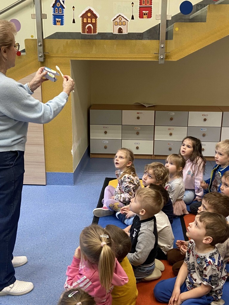 W naszym przedszkolu obchodziliśmy Dzień Dentysty. Była to świetna okazja, aby porozmawiać z dziećmi o tym, jak dbać o zdrowe i piękne zęby. Z tej okazji odwiedziła nas pielęgniarka Pani Tereska, która opowiedziała Pszczółkom i Liskom wiele ciekawych rzeczy o higienie jamy ustnej.