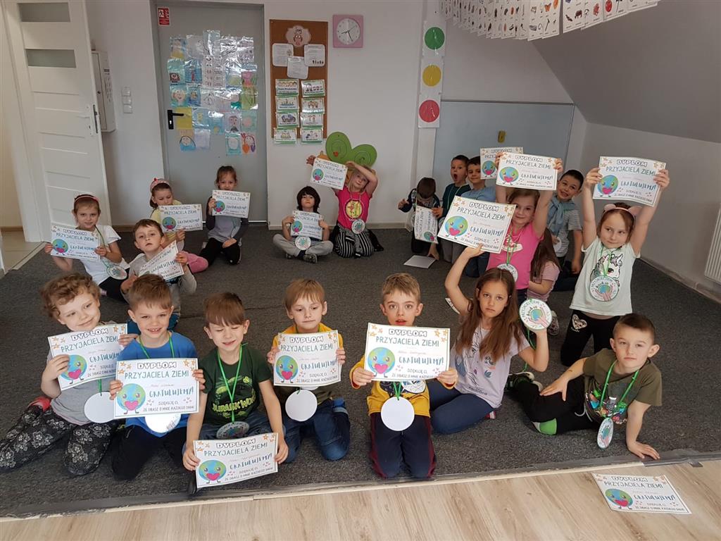 Sówki przez cały tydzień utrwalały wiadomości dotyczące ekologicznego trybu życia, gdyż zdają sobie sprawę jak ważna jest nasz planeta. Dzisiaj postanowiliśmy podczas wielu zabaw podsumować wszystkie wiadomości, które będą nam potrzebne do dbania o środowisko naturalne.