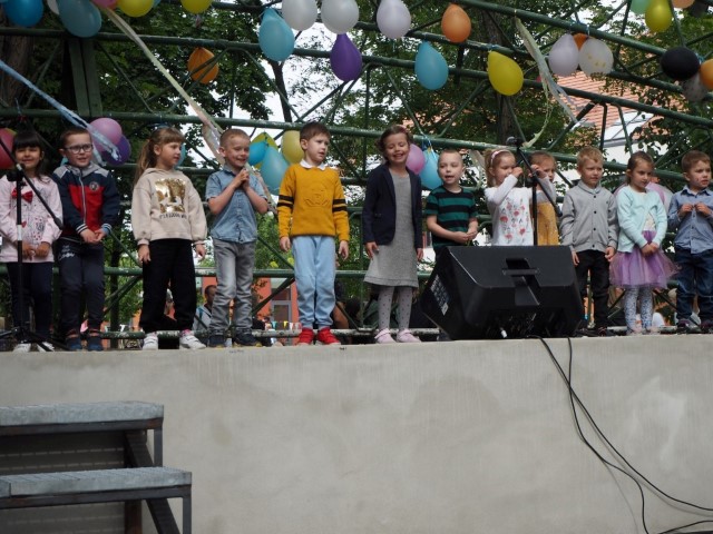 Na scenie odbyły się występy artystyczne dzieci z naszego przedszkola, pokazy gimnastyczno-taneczne oraz wokalne uczniów ze szkoły podstawowej i dzieci przybyłych z Ukrainy. Samorząd Uczniowski wraz ze Szkolnym Wolontariatem zapraszali do swojego stoiska, na którym można było zakupić „emotki” oraz własnoręcznie robioną lemoniadę. Uczniowie zmierzyli się również na sportowo z rodzicami podczas meczu siatkówki