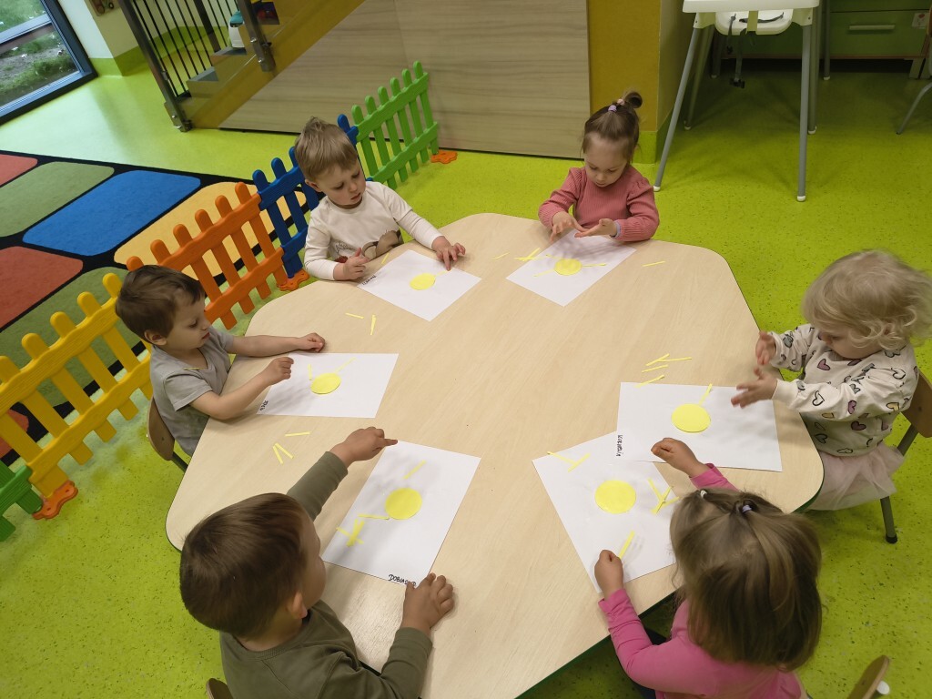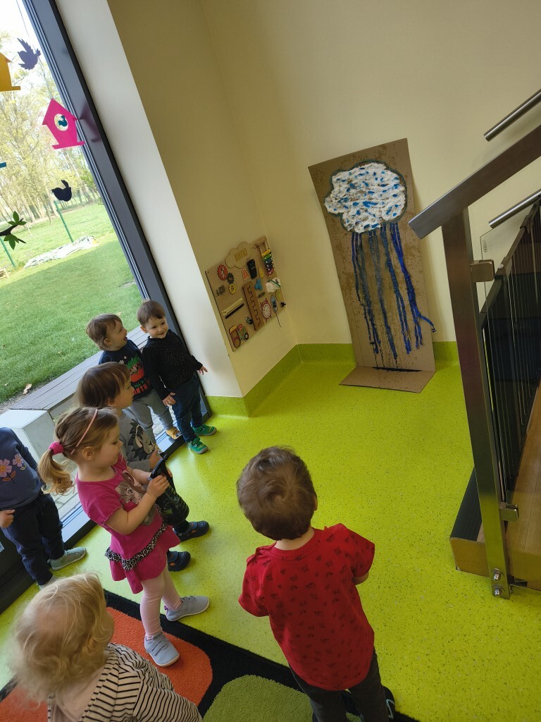 W tym tygodniu Kotki rozszerzały swoją wiedzę o zmiennej pogodzie w kwietniu. Ćwiczyliśmy rozwój wyobraźni i kreatywności. Kształtowaliśmy umiejętności obserwacji przyrody. Dzieci nauczyły się jak ubierać na podwórko gdy jest ciepła pogoda, wykleiły postać chłopca odpowiednimi ciuchami. Stworzyły również słoneczka z żółtego papieru. Najwiekszą frajdę dzieci miały przy tworzeniu deszczu polewając wodą deszczową chmurę. Dzieci tworzyły wiatr dmuchając w kolorowe piórka.