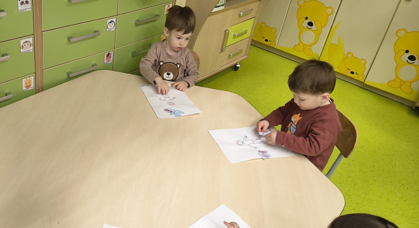 W tym tygodniu Kotki rozszerzały swoją wiedzę o zmiennej pogodzie w kwietniu. Ćwiczyliśmy rozwój wyobraźni i kreatywności. Kształtowaliśmy umiejętności obserwacji przyrody. Dzieci nauczyły się jak ubierać na podwórko gdy jest ciepła pogoda, wykleiły postać chłopca odpowiednimi ciuchami. Stworzyły również słoneczka z żółtego papieru. Najwiekszą frajdę dzieci miały przy tworzeniu deszczu polewając wodą deszczową chmurę. Dzieci tworzyły wiatr dmuchając w kolorowe piórka.