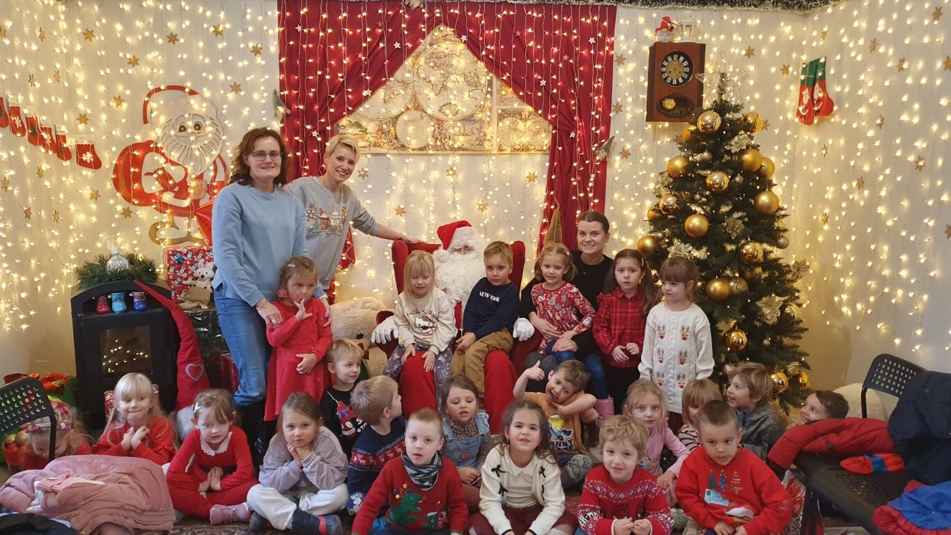 Najbardziej oczekiwanym momentem było oczywiście spotkanie ze Świętym Mikołajem. Każde dziecko mogło z nim porozmawiać, zrobić pamiątkowe zdjęcie i poczuć prawdziwą magię zbliżających się świąt. Na koniec wszystkie dzieci otrzymały prezent od Św. Mikołaja.