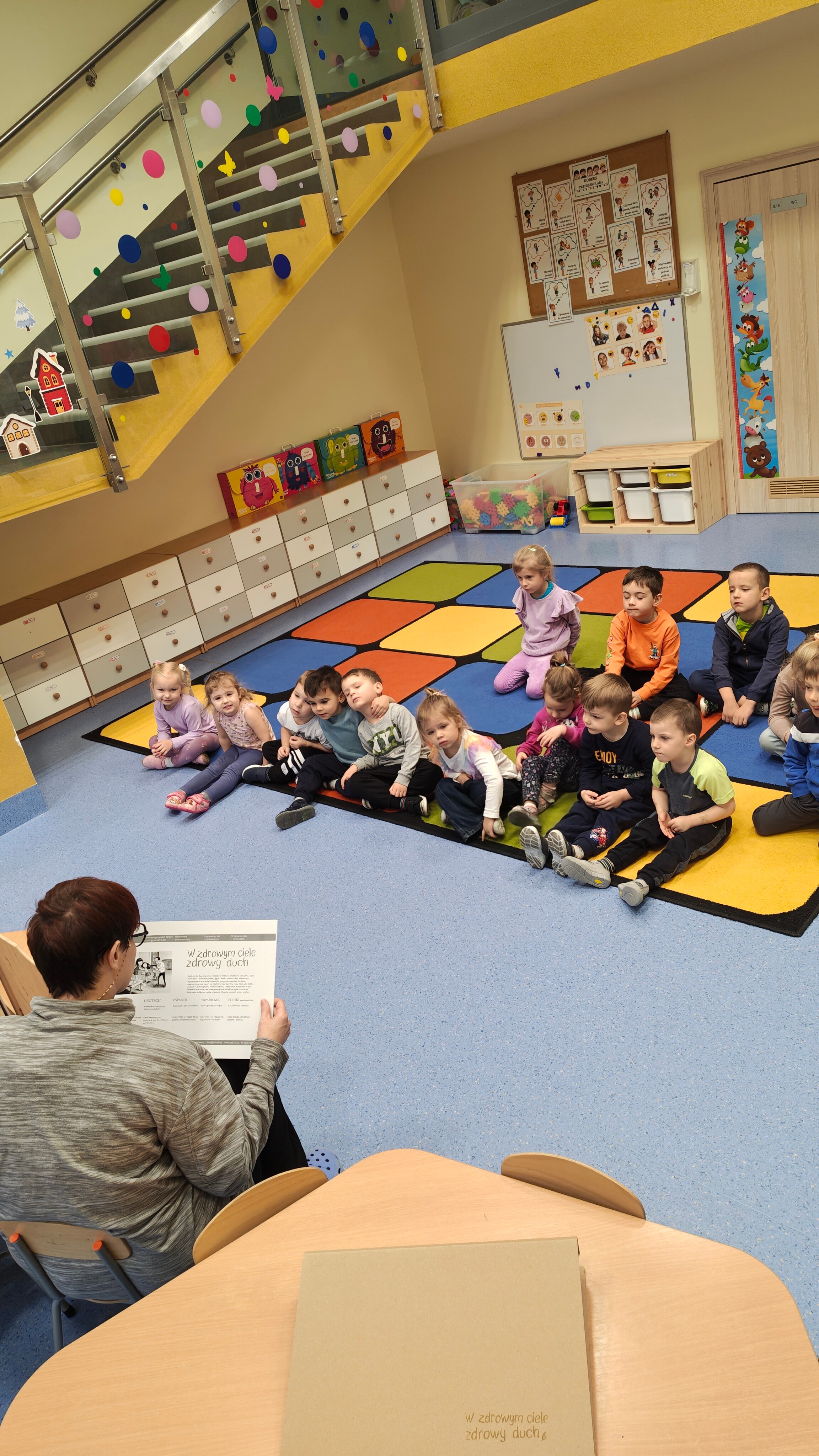 Głównym punktem programu była opowieść pt. „W zdrowym ciele, zdrowy duch”, którą nabyliśmy w profesjonalnym Wydawnictwie Kokosza. Ta przepięknie ilustrowana bajka dotyka niezwykle ważnego w dzisiejszych czasach tematu: Wpływu smartfonów i ekranów na życie dziecka.