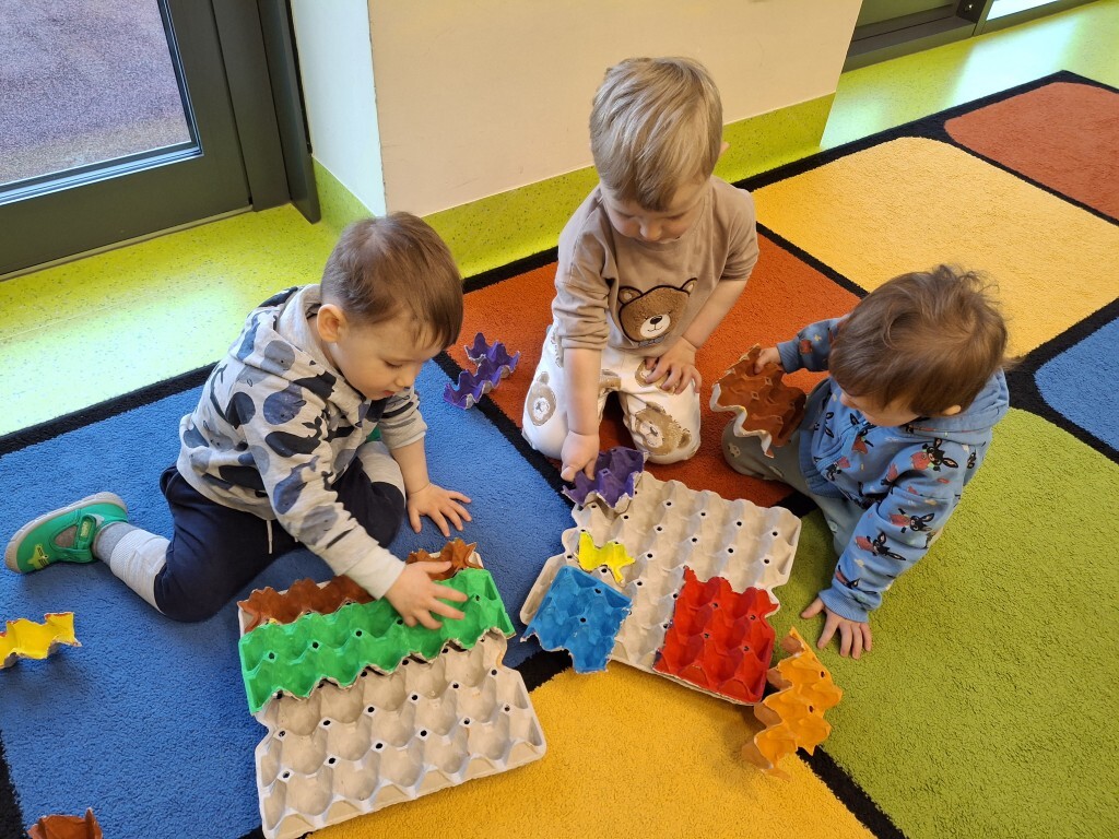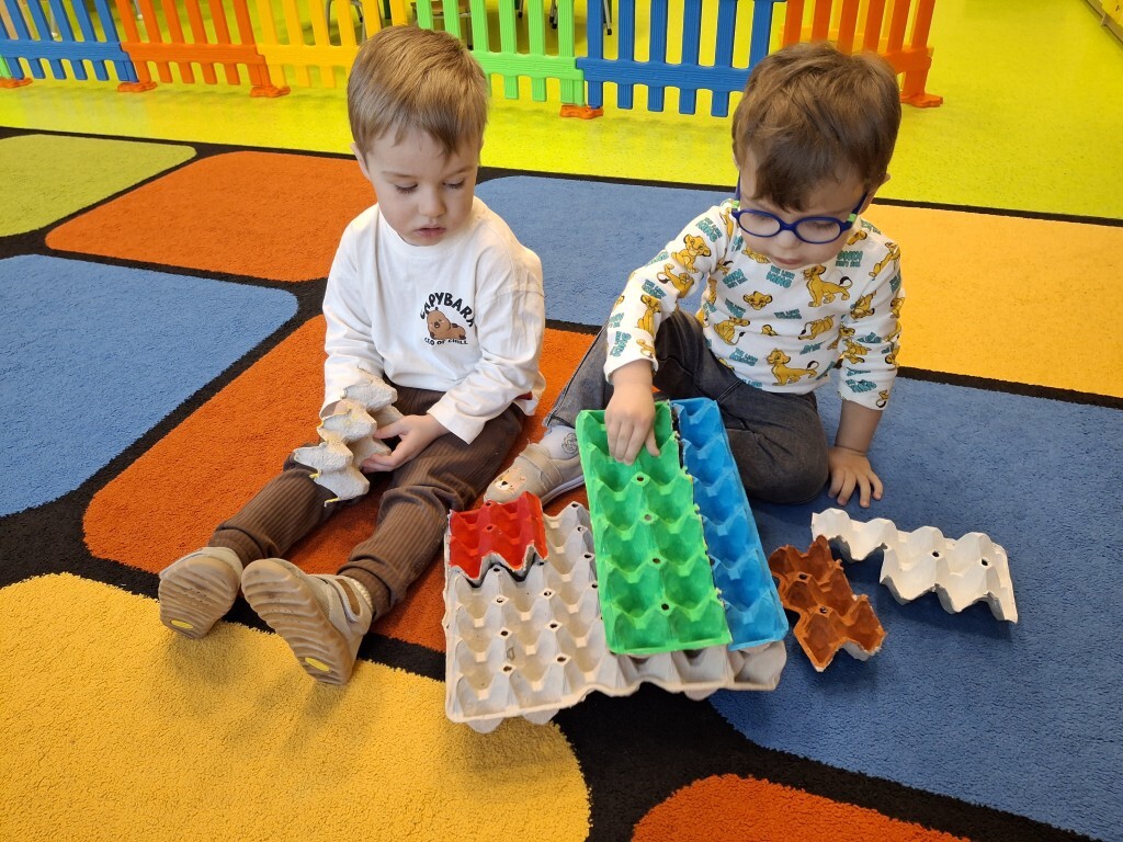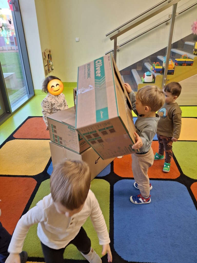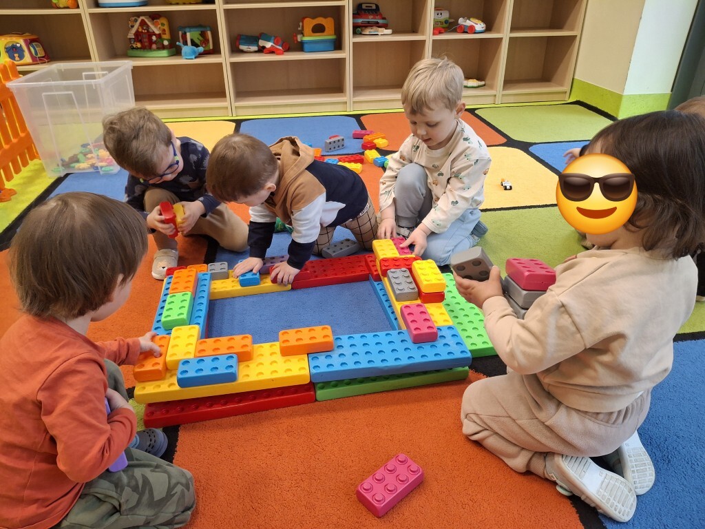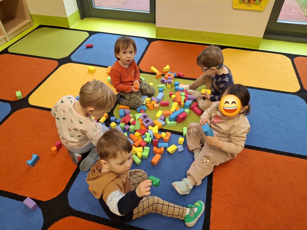 W minionym tygodniu dzieci z grupy Kotków budowały wieże, zamki i domki z różnego typu klocków. Celem zabaw był rozwój wyobraźni przestrzennej i logicznego myślenia oraz kształtowanie umiejętności pracy w grupie. Dzieci starały się segregować klocki według koloru, a poprzez dotyk określały, czy klocek jest miękki, czy twardy. W piątek z kartonów tworzyliśmy „dom”, który następnie przyozdabialiśmy malunkami. Korzystając ze sprzyjającej pogody, chodziliśmy na spacery oraz bawiliśmy się na placu zabaw. Realizowane aktywności pozwoliły dzieciom nie tylko rozwijać zdolności manualne, ale także zintegrować się podczas wspólnych zabaw.