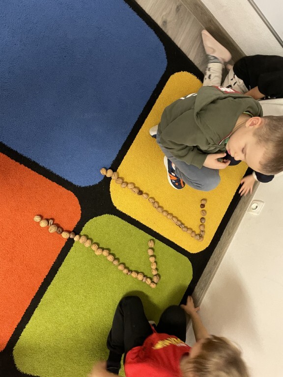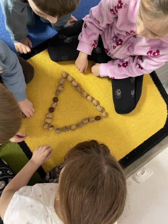 6-latki z grupy Motylki już kolejny raz biorą udział w zadaniach w projekcie matematycznym „Matematyka w darach natury ukryta.” Korzystając z darów natury, podczas zajęć układaliśmy z kasztanów i patyków figury geometryczne oraz cyfry. To już nasze ostatnie jesienne aktywności, bo mamy grudzień, a niedługo zaczynamy zimowe zabawy matematyczne!