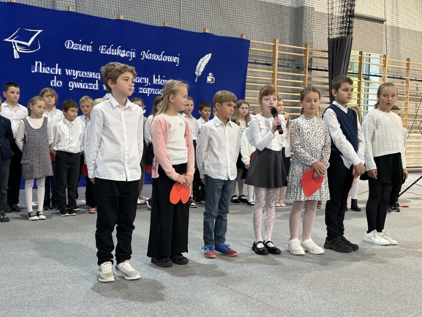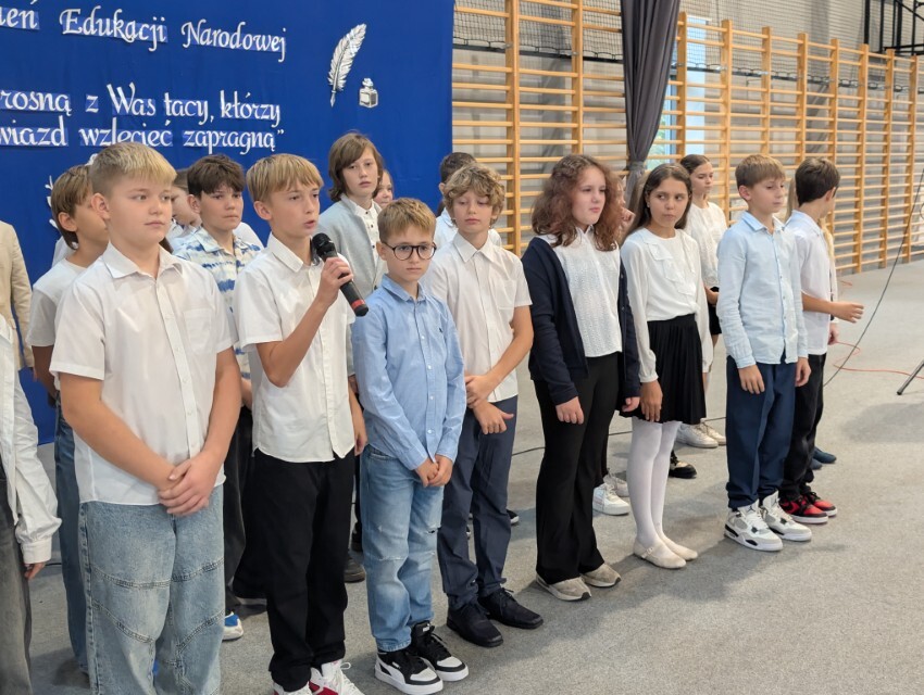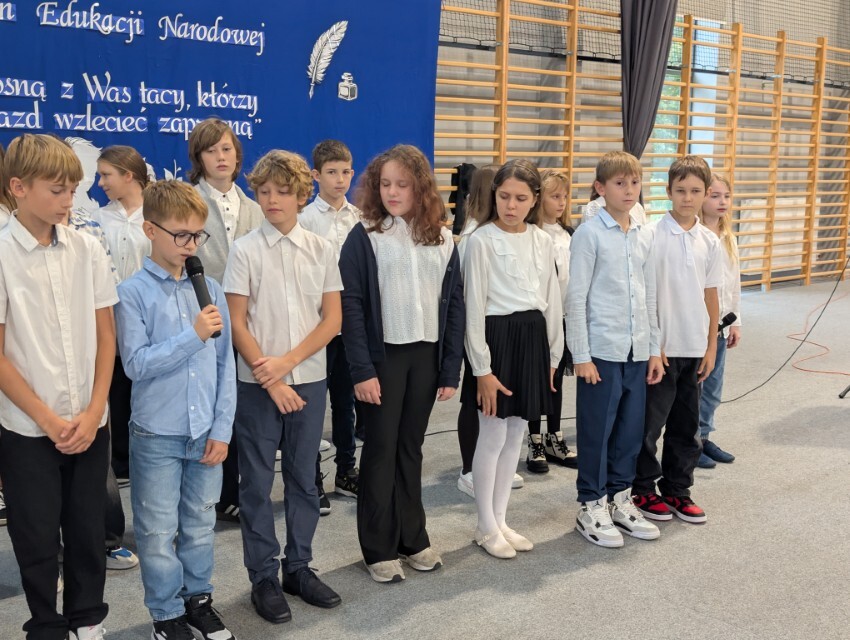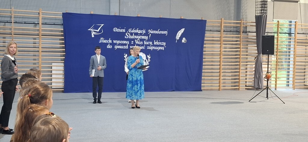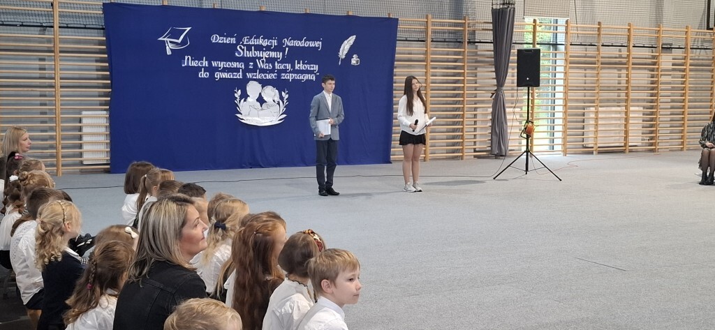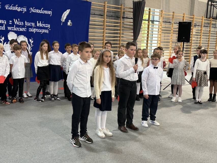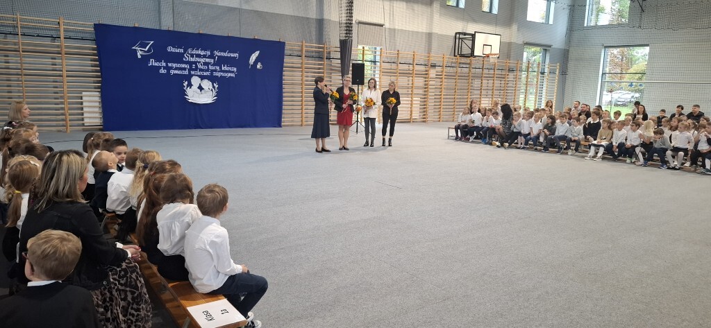 Dnia 14.10.2024r. odbyły się uroczyste apele z okazji Dnia Edukacji Narodowej przygotowane przez uczniów klas 3a,b i c oraz klas 5d i e. Uczniowie podziękowali w ten