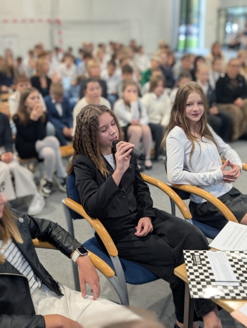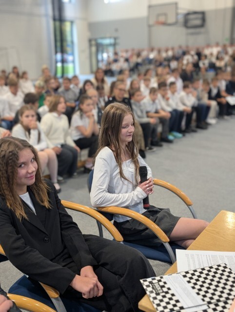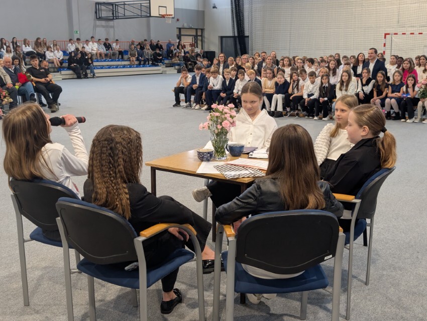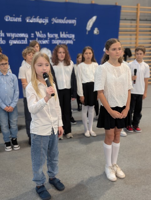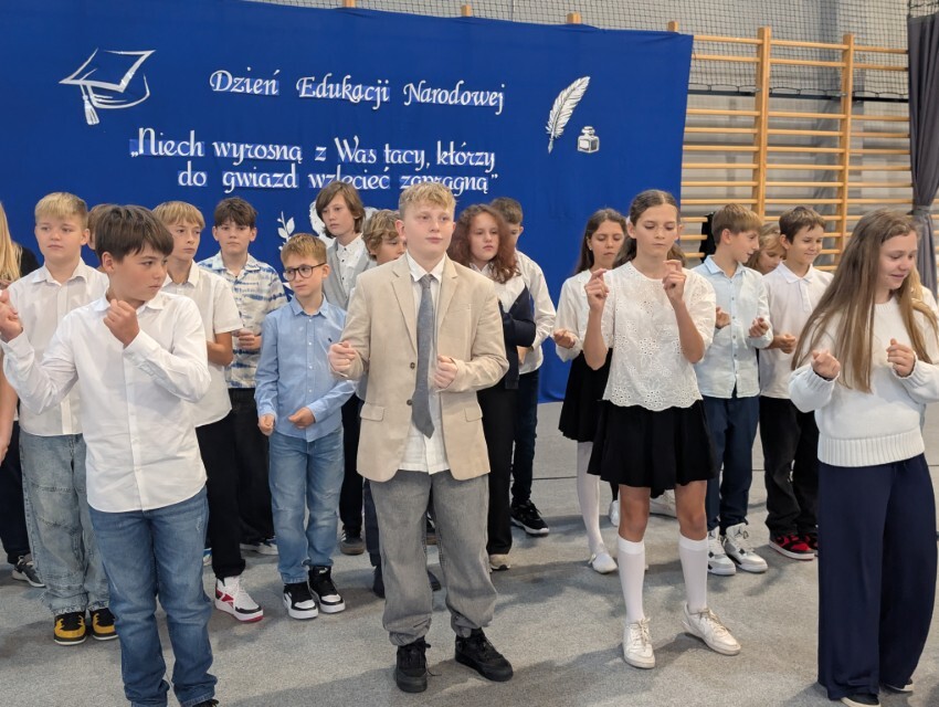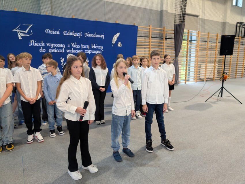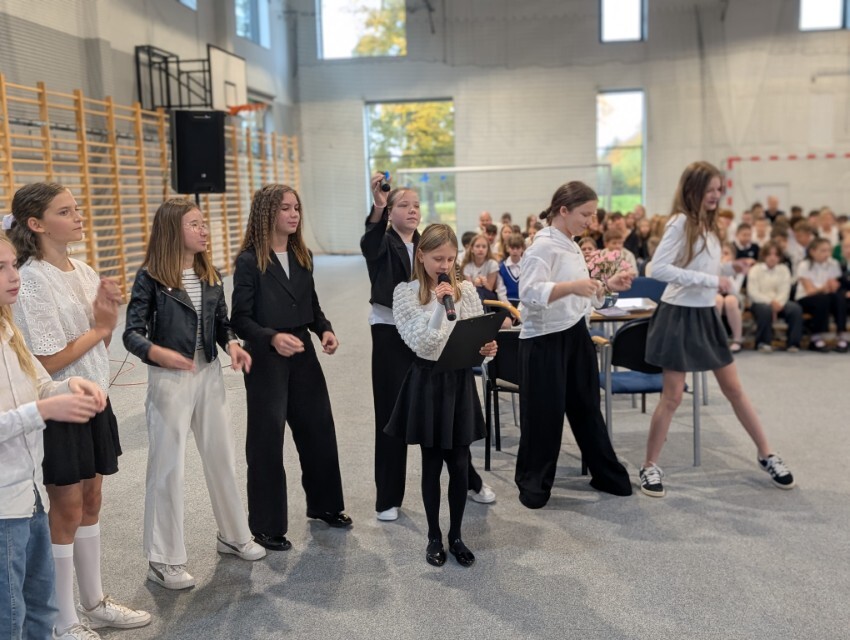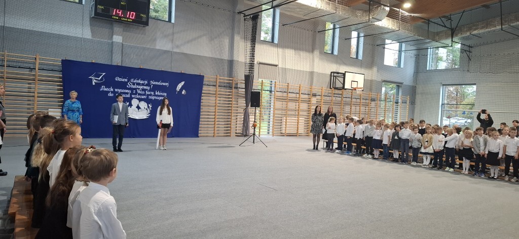 Dnia 14.10.2024r. odbyły się uroczyste apele z okazji Dnia Edukacji Narodowej przygotowane przez uczniów klas 3a,b i c oraz klas 5d i e. Uczniowie podziękowali w ten