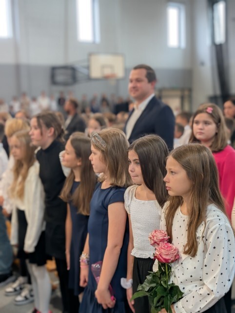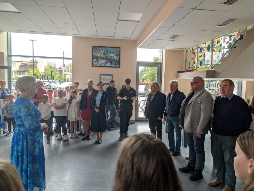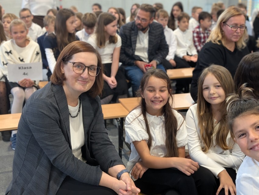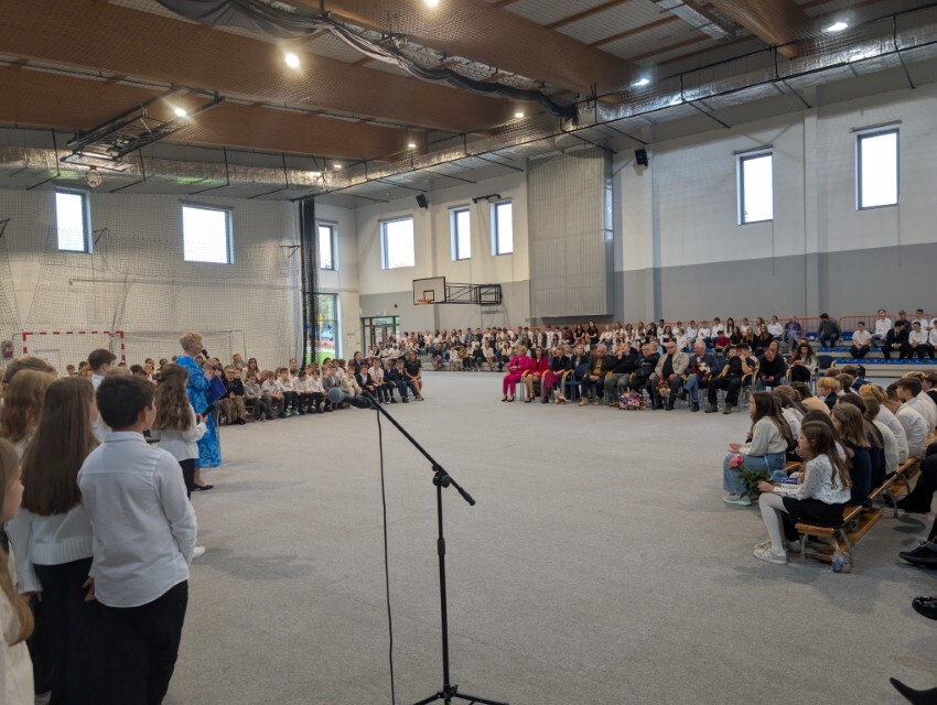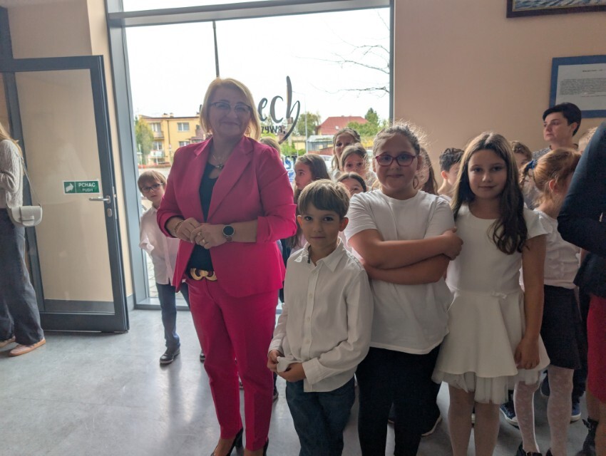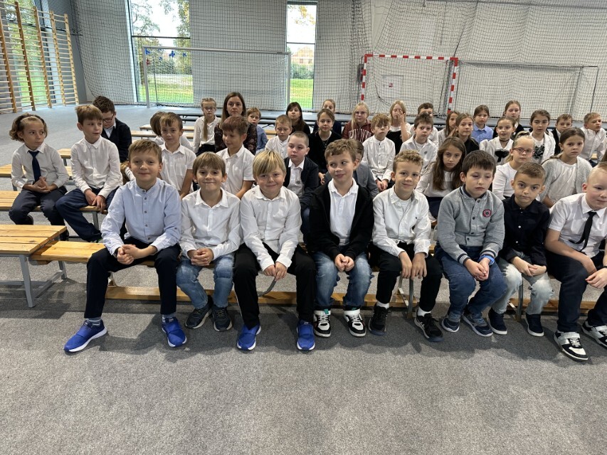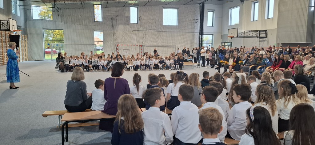 Ważnym elementem dzisiejszych uroczystości było pasowanie na ucznia. Uczniowie siedmiu klas pierwszych zaprezentowali swoje umiejętności recytatorskie oraz wokalne. Pani Dyrektor – Jadwiga Rybacka, oraz gość specjalny, Sekretarz Gminy Miękinia – Pani Małgorzata Dyrda, dokonały symbolicznym ołówkiem pasowania pierwszoklasistów