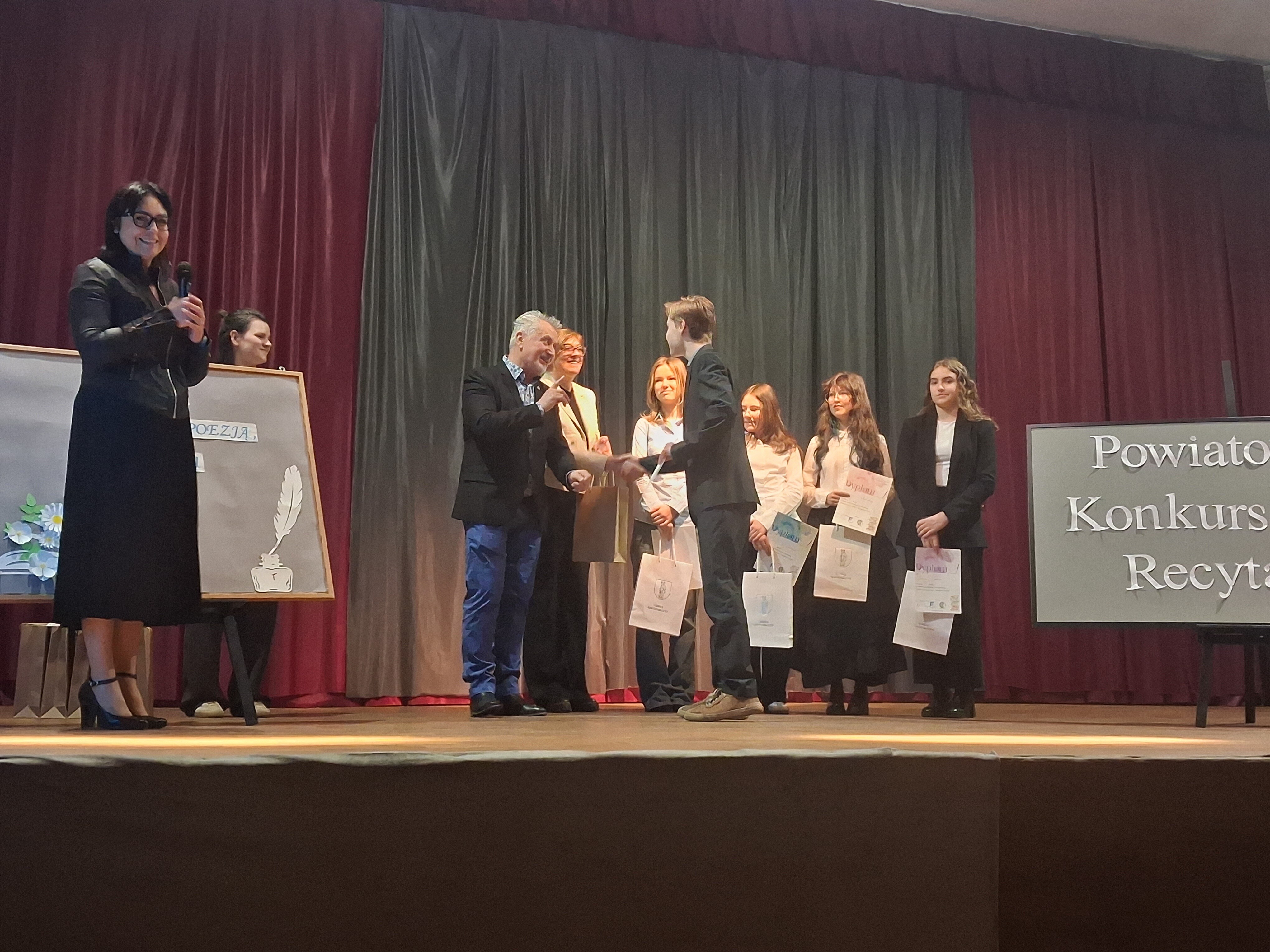 Dnia 25.032026 odbył się Powiatowy Konkurs Recytatorski „Między poezją a prozą” w Gminnym Ośrodku Kultury w Kostomłotach. Naszą szkołę na tym etapie konkursu reprezentował Kajetan Nuzban z klasy VIII B. W konkursie brali udział uczniowie z okolicznych szkół, którzy zwyciężyli etapy gminne w swoich miejscowościach, m.in. ze szkoły w Kostomłotach, Rakoszycach czy Karczycach.