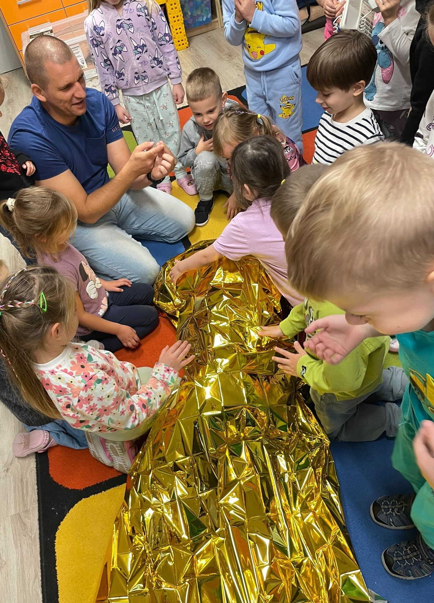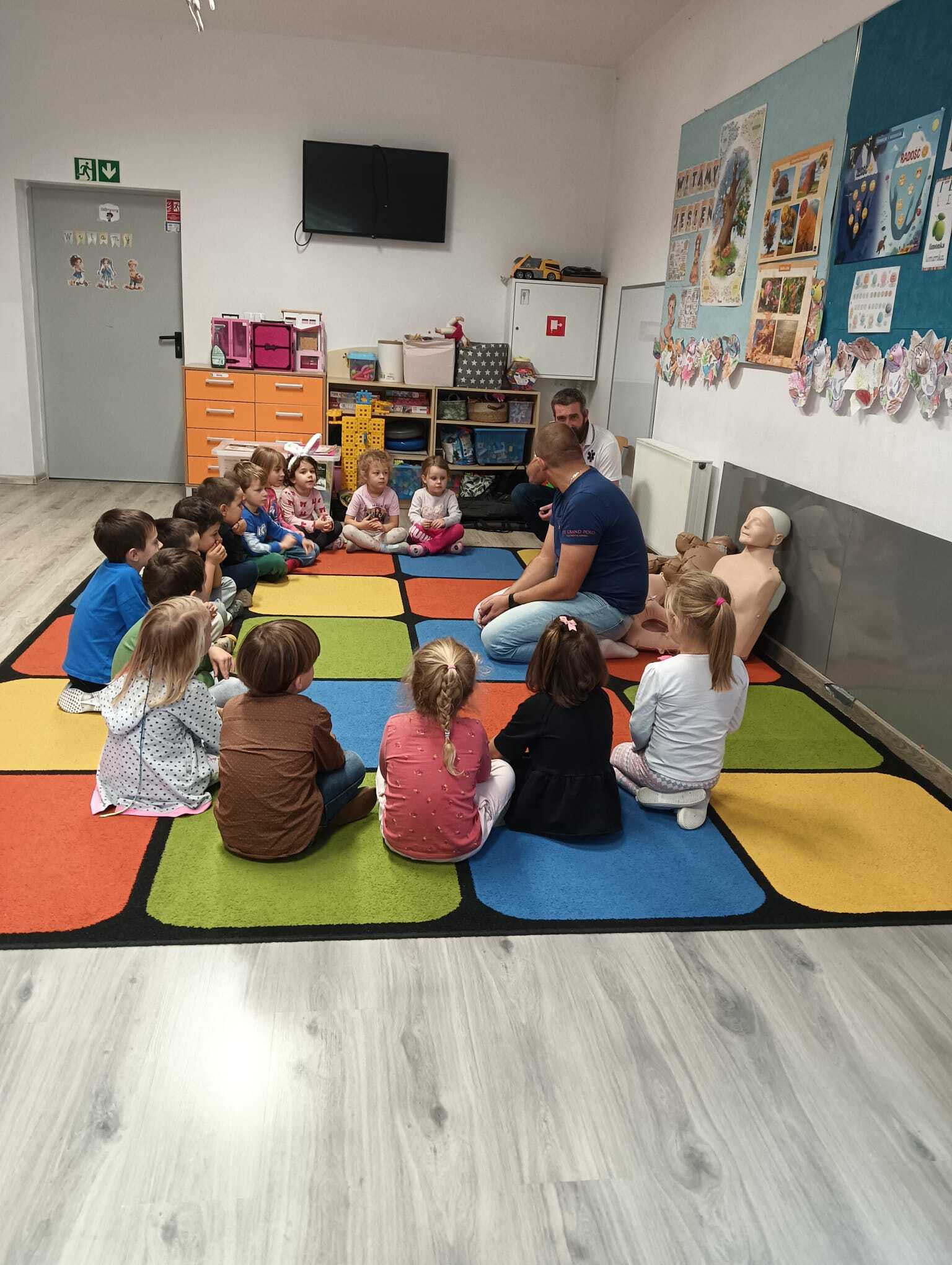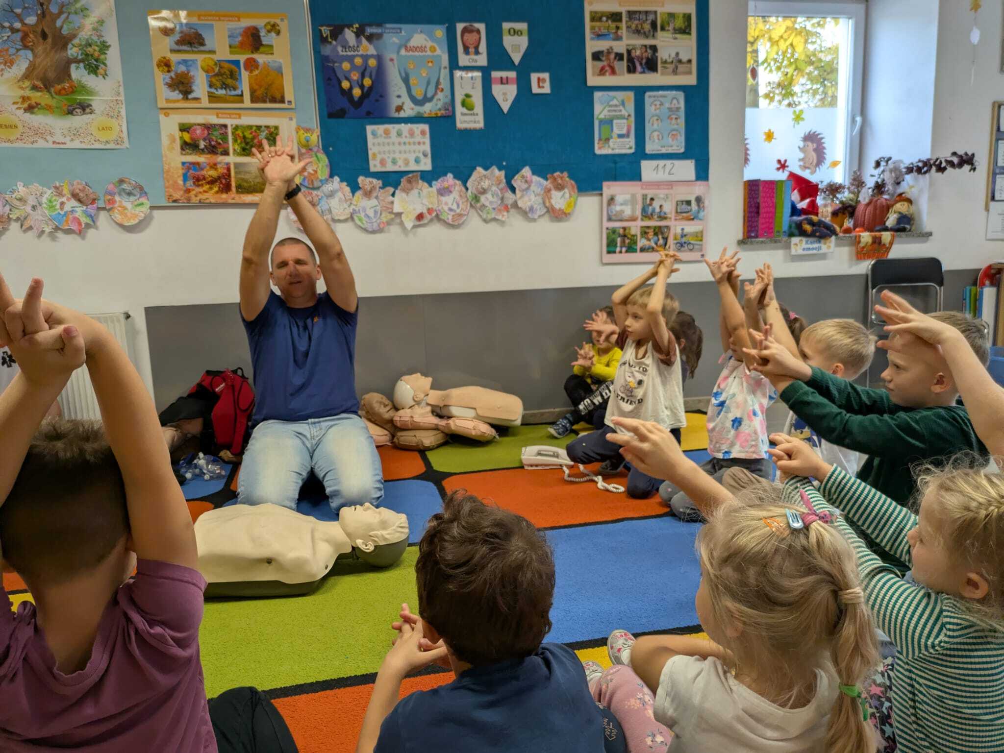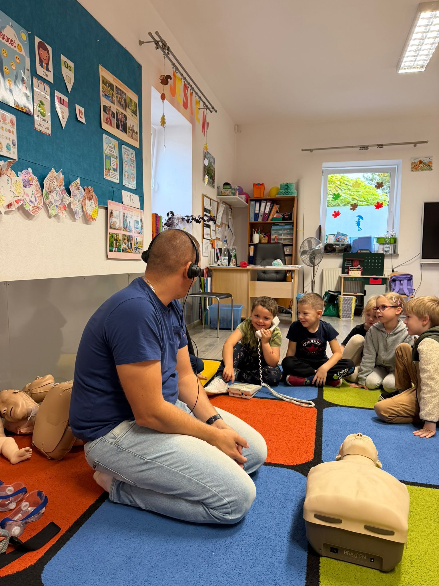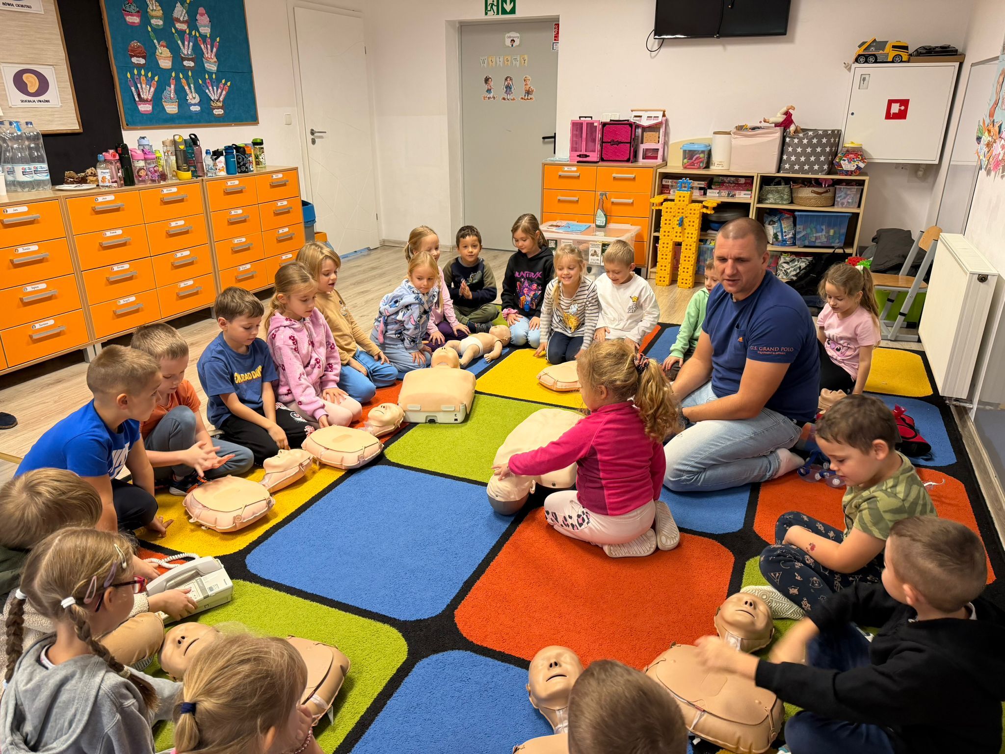 Prowadzący to ratownicy medyczni i dyspozytorzy z fundacji “ Z Mojego Łowiska” z wieloletnim doświadczeniem, umiejący zainteresować i przekazać cenną wiedzę najmłodszym. Dzieci miały okazję uczyć się jak reagować w sytuacjach zagrożenia zdrowia. W praktyczny sposób trenowały jak udzielić pomocy oraz jak wezwać służby ratunkowe, utrwalając numer alarmowy 112. W podziękowaniu dzieci stworzyły laurki dla ratowników.