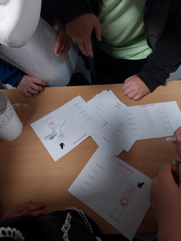 Uczniowie klas 8 odwiedzali młodszych kolegów prezentując rekwizyty kojarzące się z bajkami. Zachęcali do odgadywania tytułów. Dzieci okazały się mistrzami w tej dziedzinie, a całości towarzyszył śmiech i zabawa.