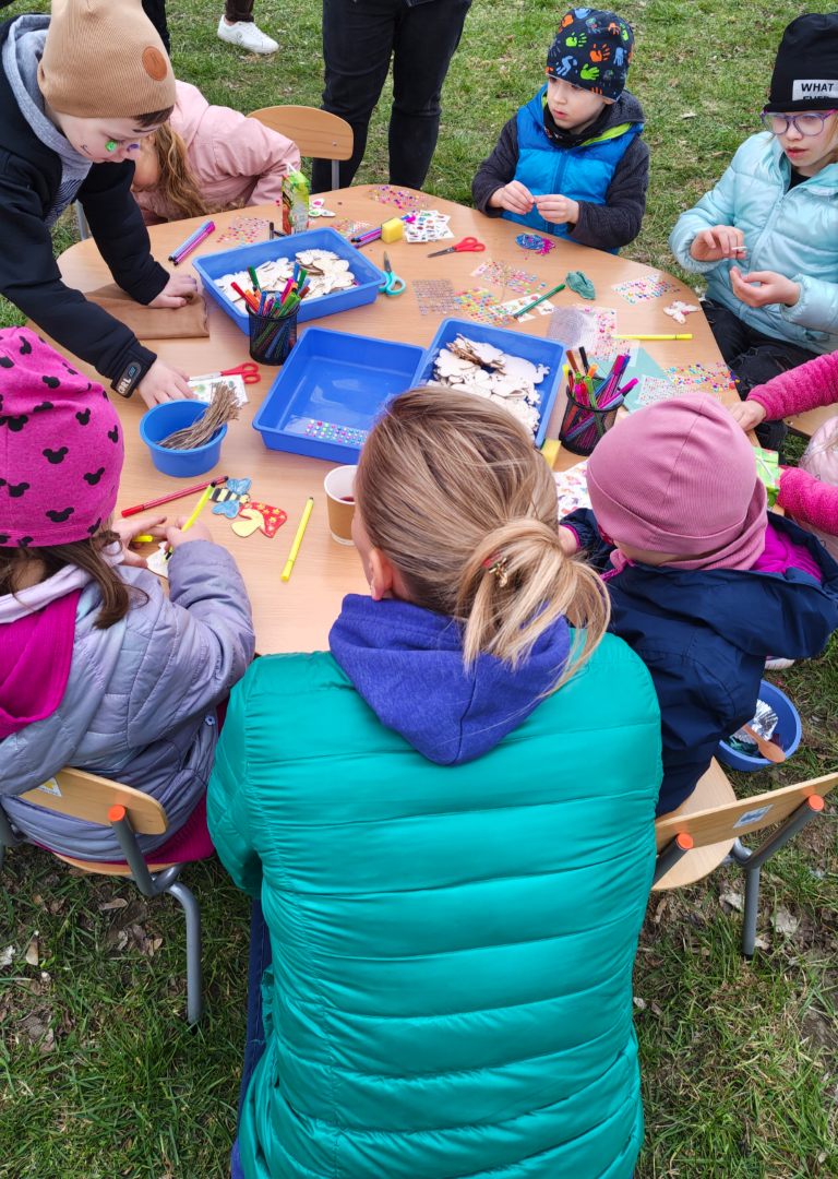 Nasze Panie Nauczycielki zadbały o to, by marcowe popołudnie było pełne twórczych wyzwań, a każde dziecko znalazło na pikniku coś dla siebie. W ogrodzie powstało wiele kreatywnych stref: