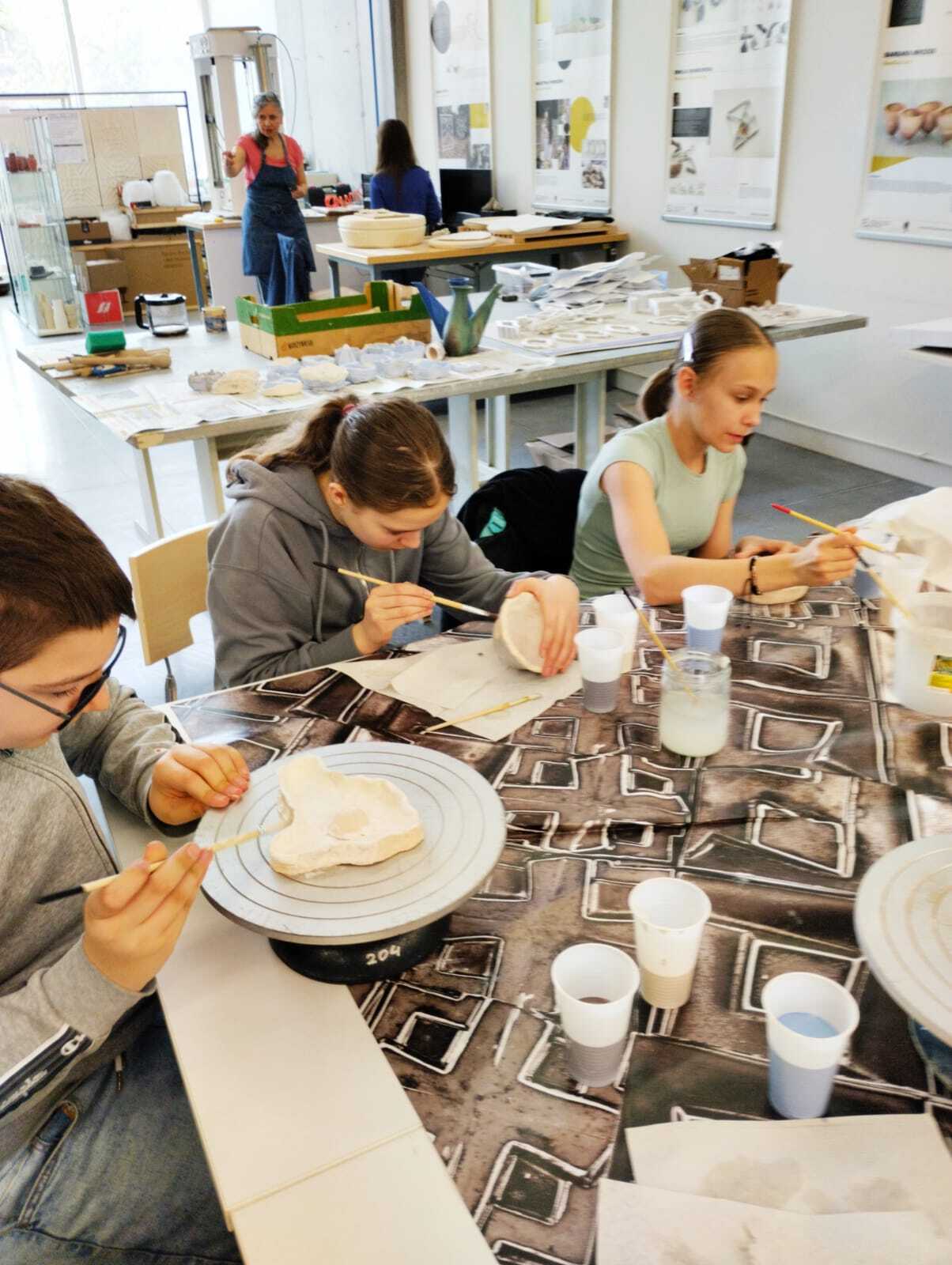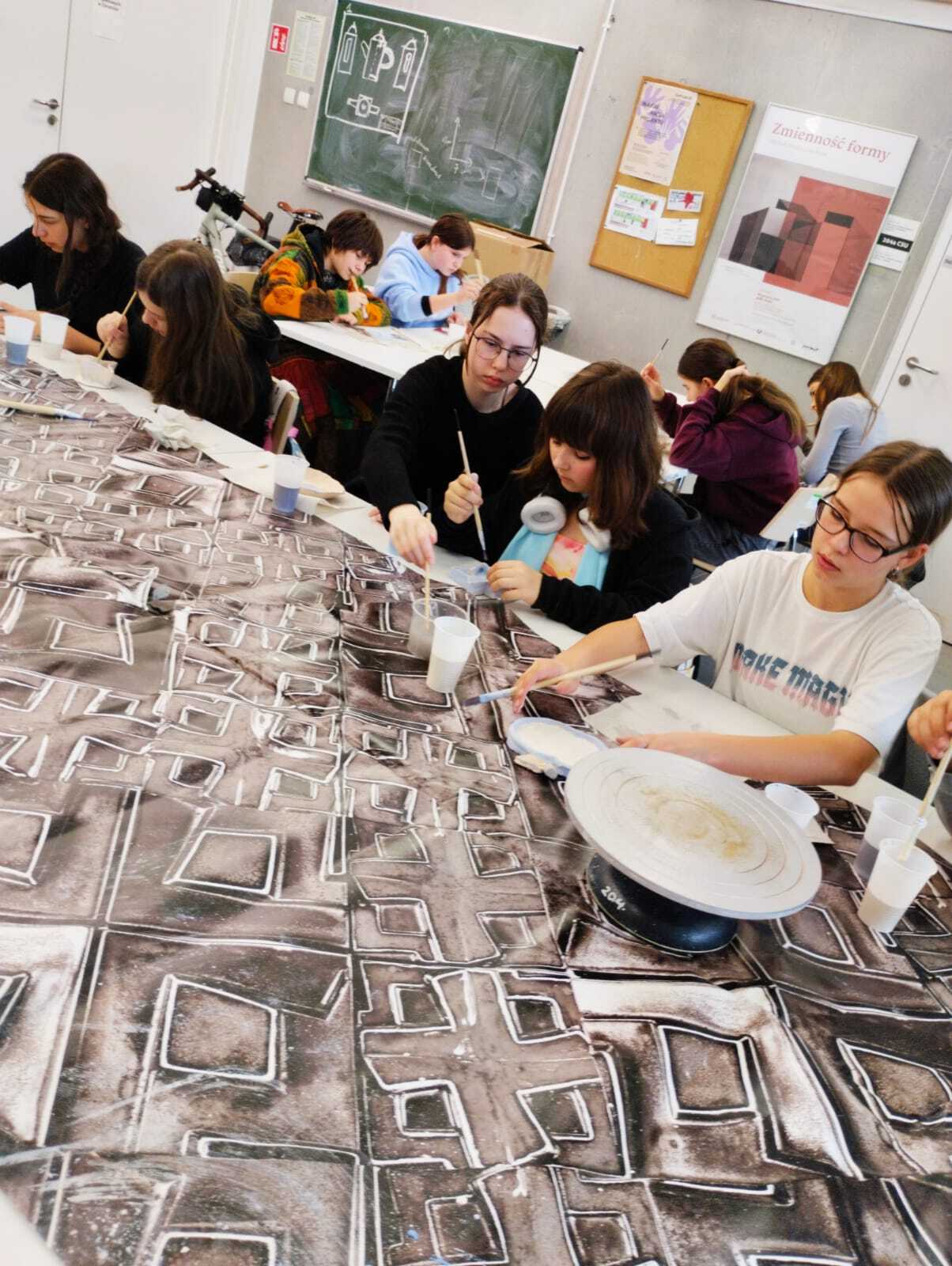 Podsumowując, udział w warsztatach był cennym doświadczeniem, które pozwoliło na zdobycie nowych umiejętności oraz poszerzenie wiedzy z zakresu ceramiki i projektowania. Zajęcia sprzyjały twórczej atmosferze oraz wymianie doświadczeń między uczestnikami, co dodatkowo wzbogaciło cały proces nauki. Jesteśmy bardzo wdzięczni Panu Piotrowi Stockiemu za możliwość skorzystania z warsztatów, cenne wskazówki a przed wszystkim za poświęcony czas dla młodych zdolnych uczniów naszej szkoły.