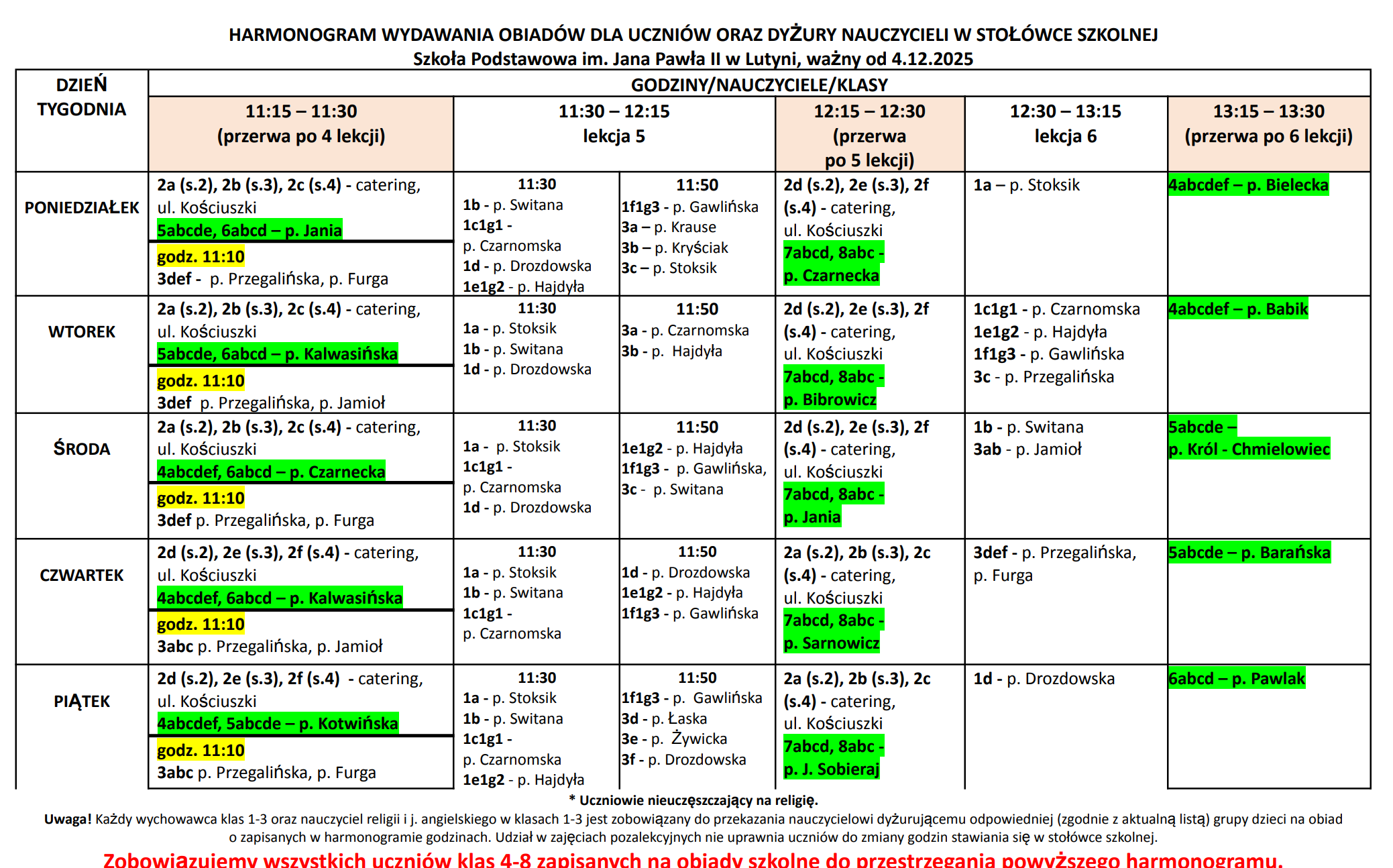 w tytule przelewu należy wpisać „opłata za obiad” oraz podać