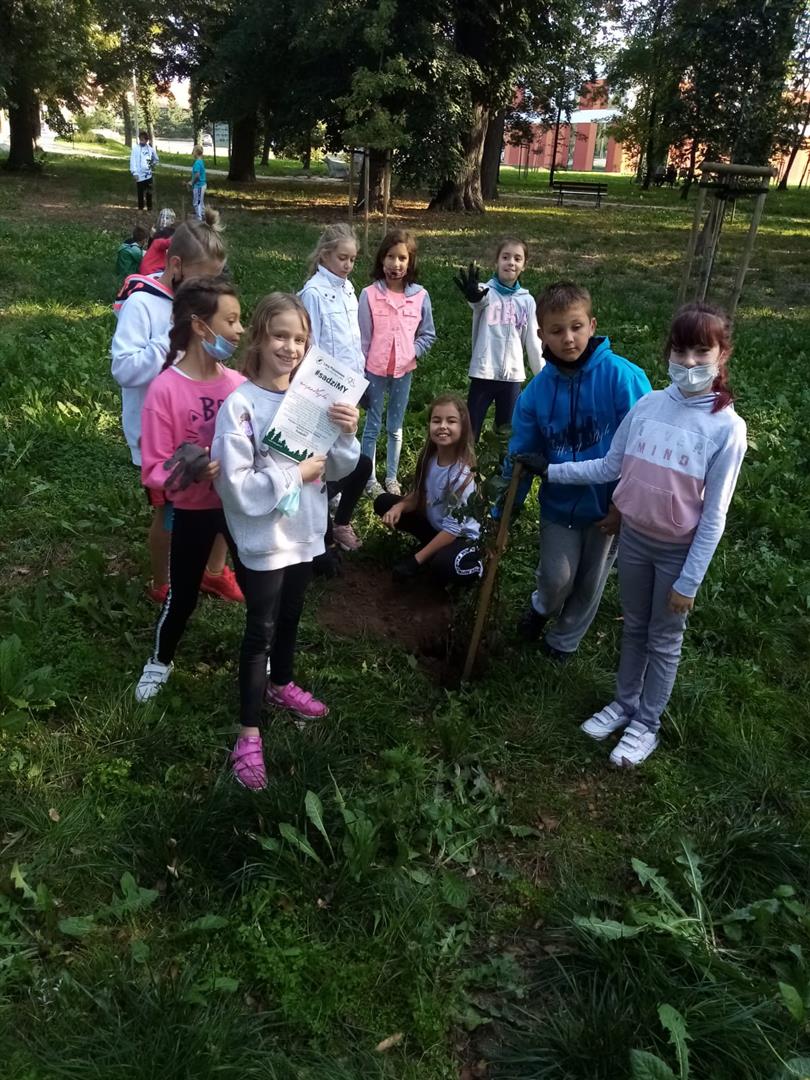Klasa 3C brała udział w akcji Nadleśnictwa Polskiego pt. "sadziMY". Nasz park wzbogacił się o 10 nowych drzewek!