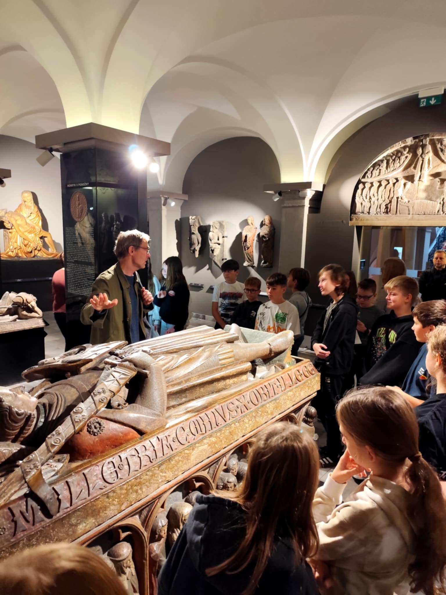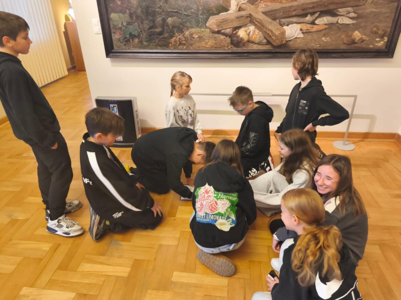 W dniu 23.10.2025 klasa V d udała się do Muzeum Narodowego we Wrocławiu gdzie odbyły się warsztaty pt,, Podchody z Królami,,.