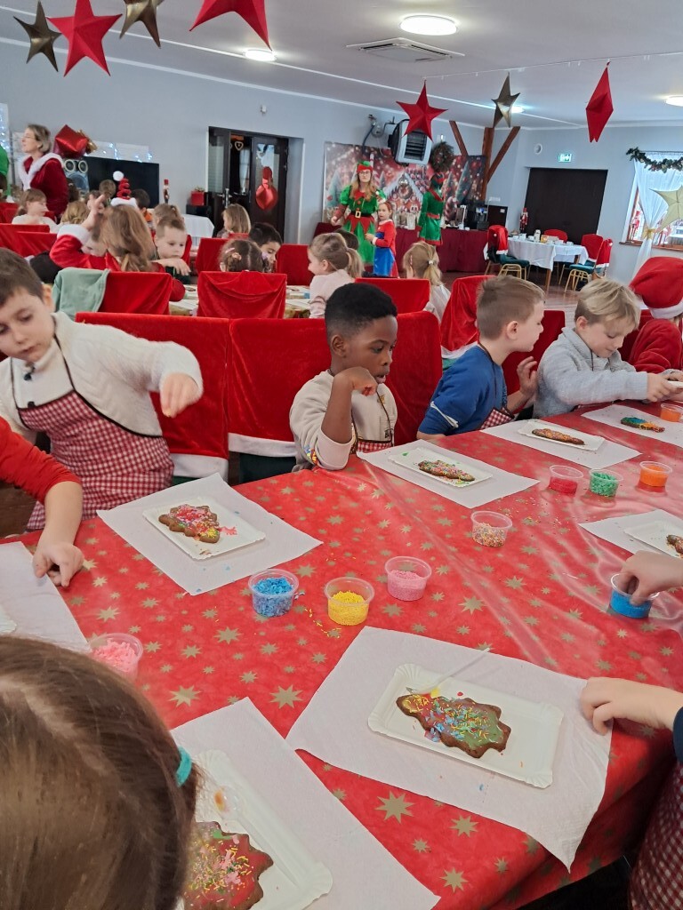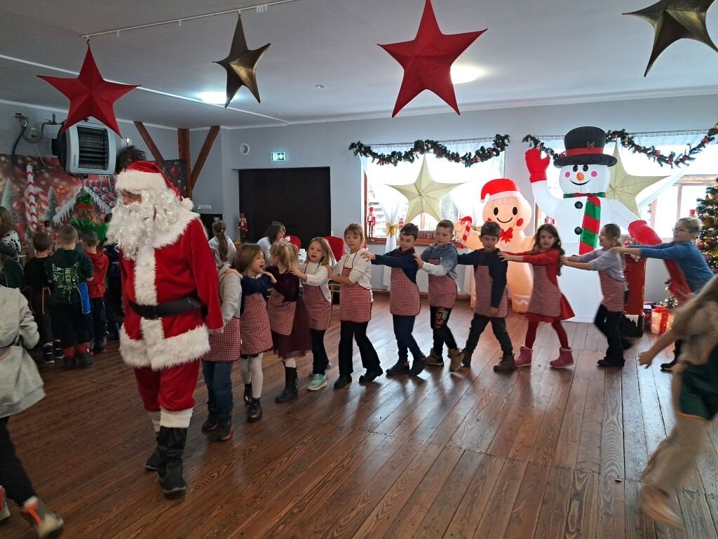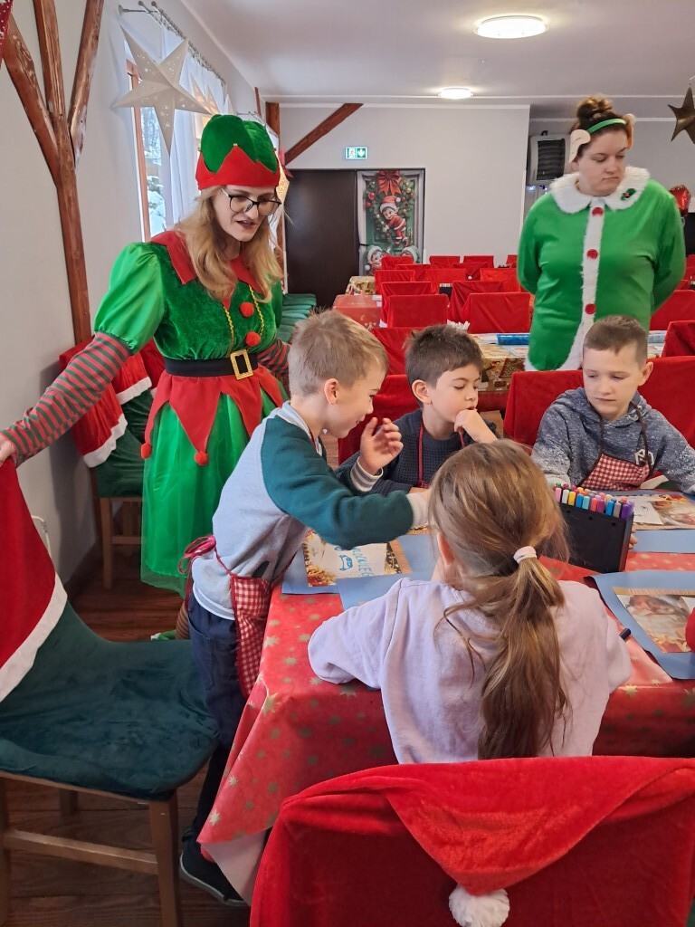 Program warsztatów był bardzo bogaty i dostarczył dzieciom wielu radosnych wrażeń. Uczniowie pisali listy do Świętego Mikołaja, a następnie mieli okazję spotkać się z nim osobiście. Wspólnie bawili się, śpiewali piosenki oraz uczestniczyli w zabawach o tematyce świątecznej. Dzieci ozdabiały pierniki i bombki, malowały ozdoby choinkowe, dekorowały świąteczne torebki oraz ubierały choinki. Dużym zainteresowaniem cieszył się również jarmark bożonarodzeniowy, który uczniowie mogli obejrzeć podczas pobytu.