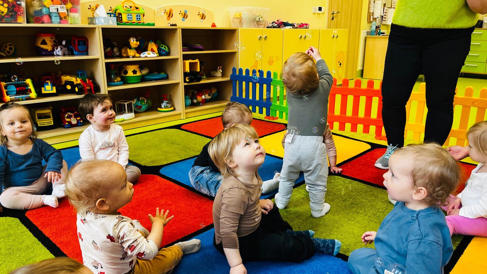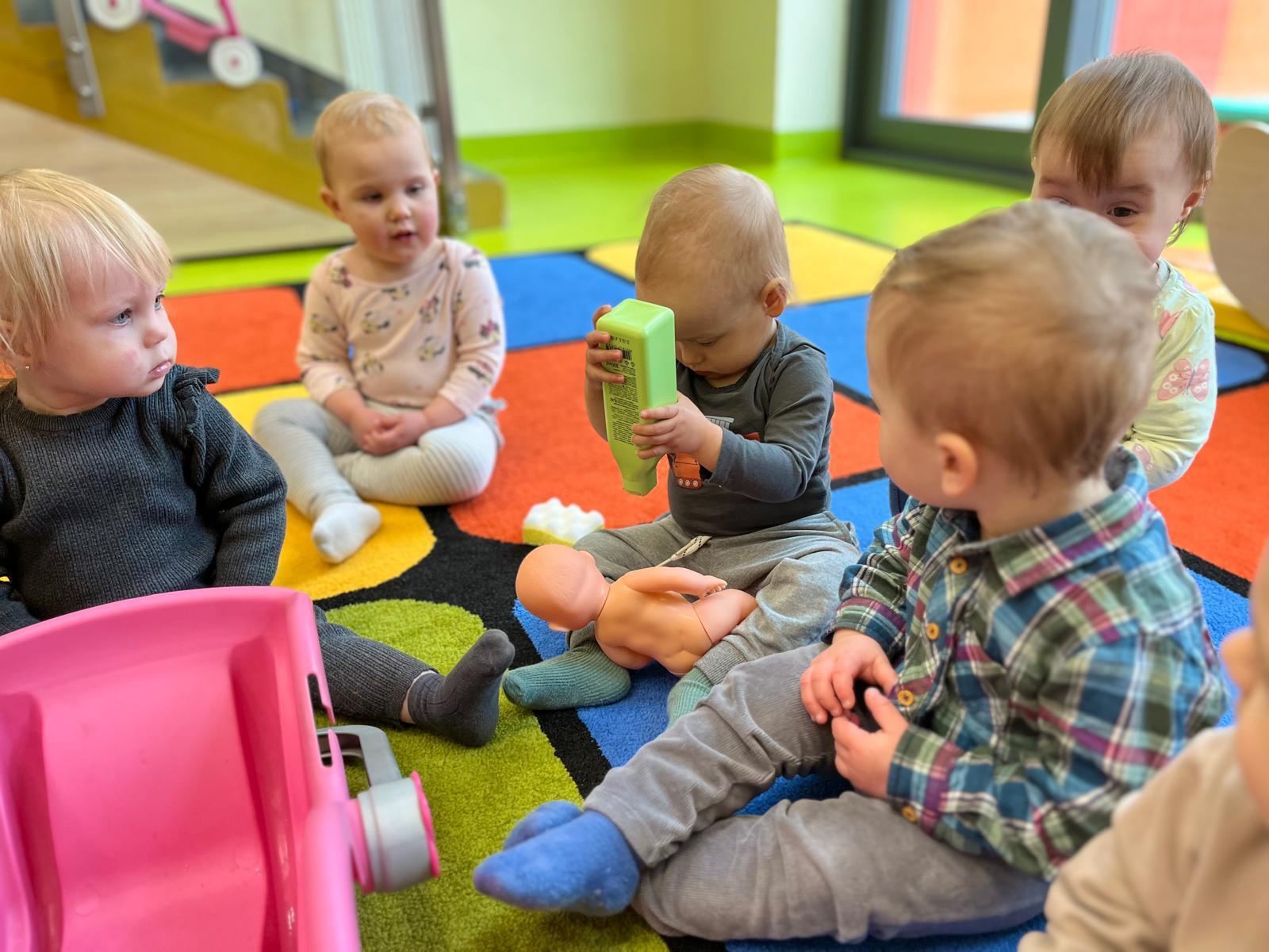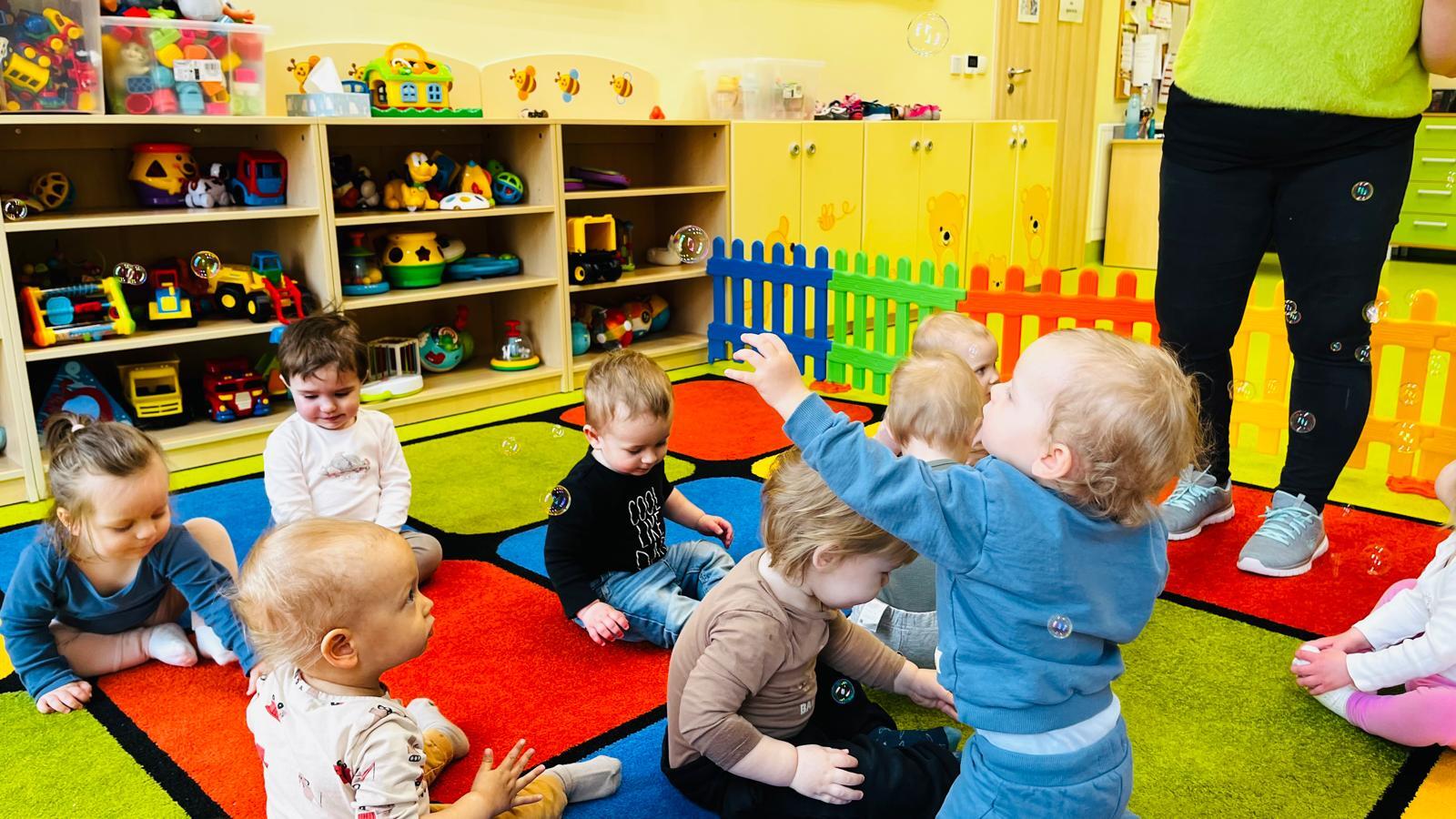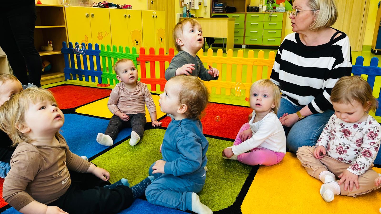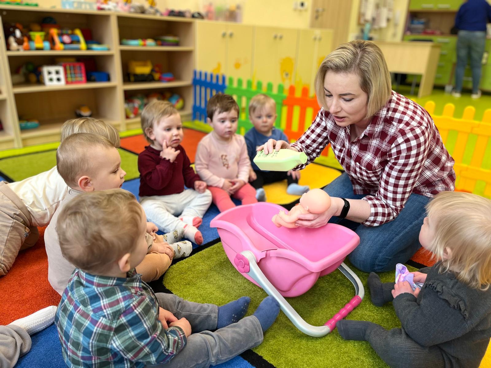Podczas zajęć Krasnale „kąpały lalę” ucząc się krok po kroku jak wygląda prawidłowe mycie od przygotowania potrzebnych rzeczy, przez delikatne mycie, aż po wycieranie i pielęgnacje. W ramach zajęć wykonaliśmy również pracę plastyczną związaną z tematyką kąpieli. Dużo radości sprawiła, także zabawa z bańkami mydlanymi.