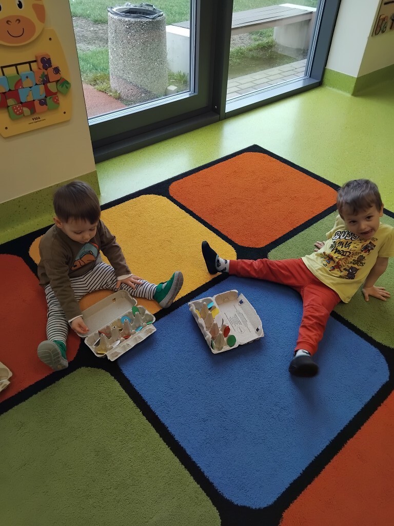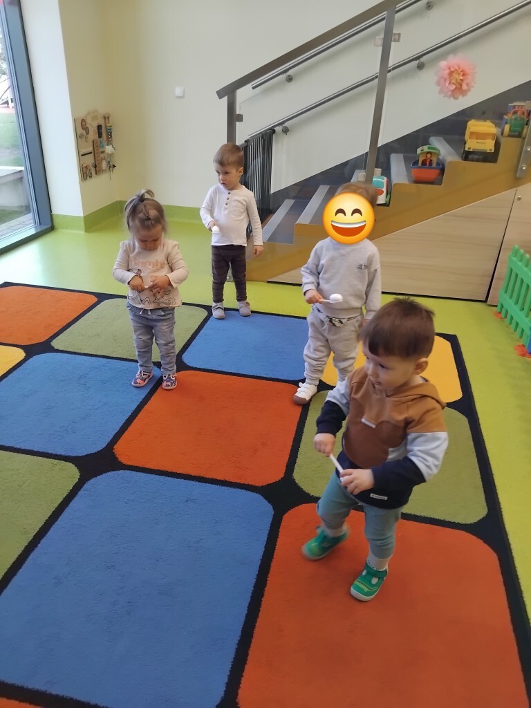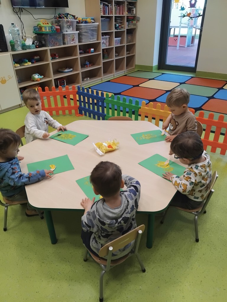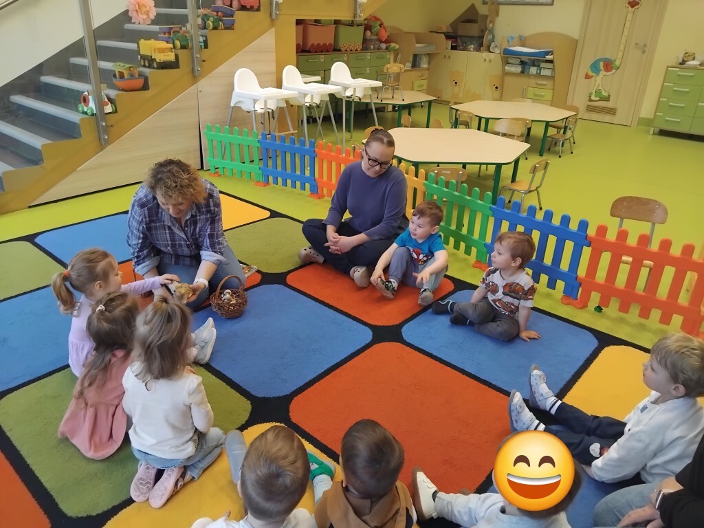 W świątecznym tygodniu Kotki poznały wielkanocne tradycje i zwyczaje . Już wiedzą co powinno znaleźć się w wielkanocny koszyczku. Stworzyły wspólną wielkanocną pisankę. Za pomocą drewnianych widelczyków i żółtej farby namalowały kurczaczka oraz z kolorowego papieru wykleiły zajączka. Zadaniem dzieci było układanie wyciętych kolorowych jajeczek w wytłoczkach , mając podaną sekwencje kolorów oraz przenoszenie styropianowych jajek na plastikowych łyżkach .Był to tydzień pełen radości i uśmiechu.