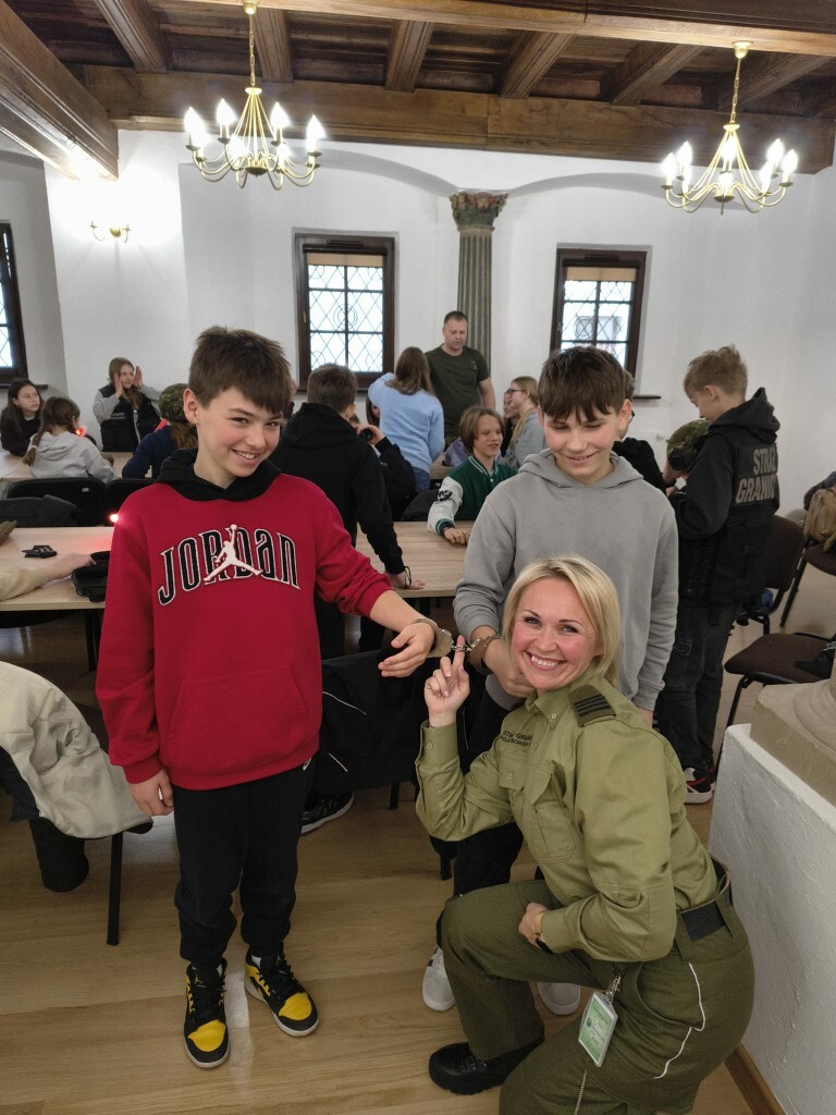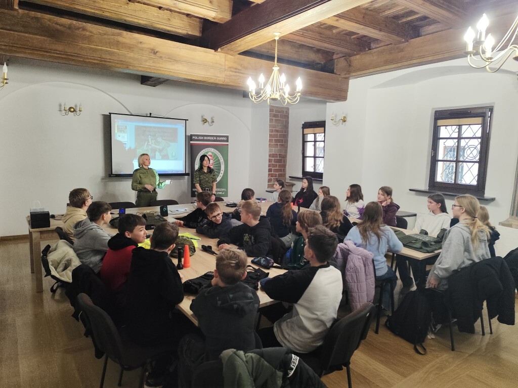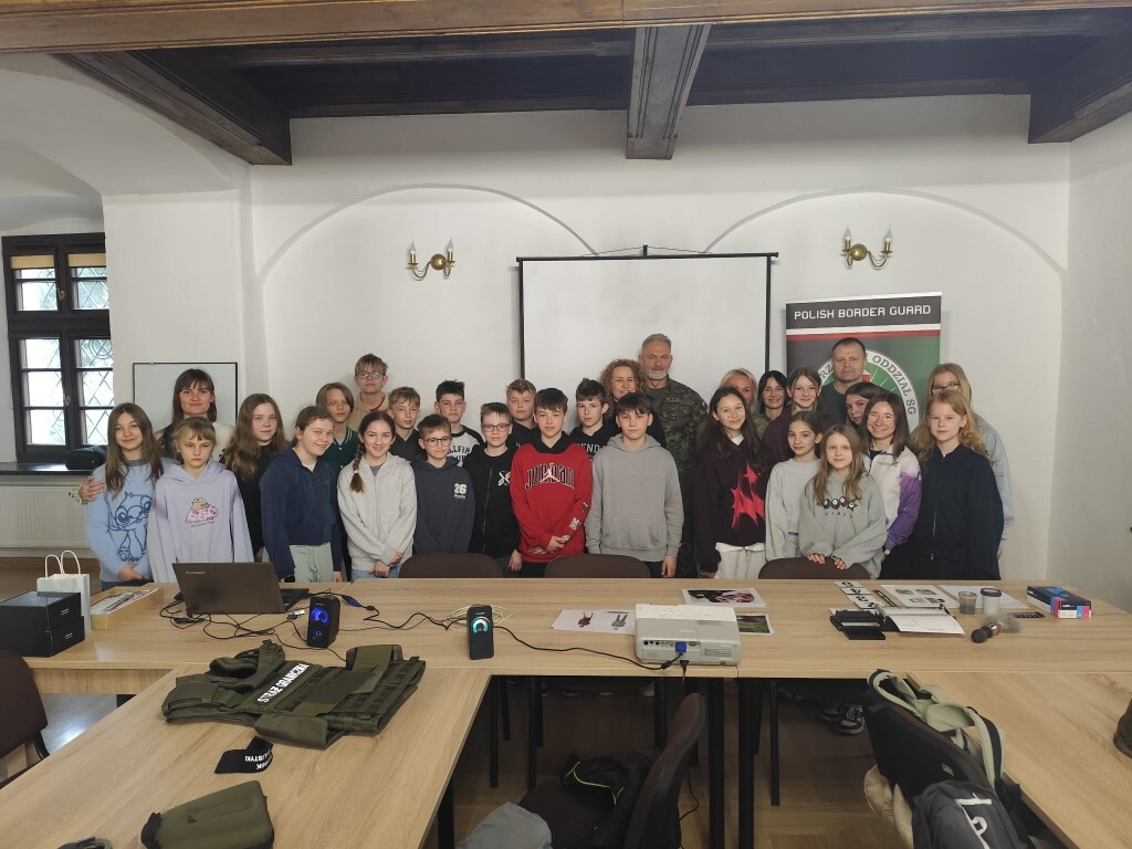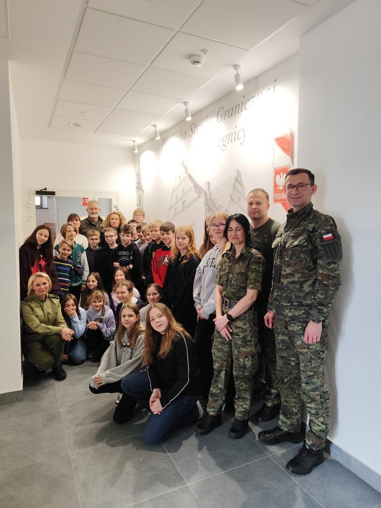 Pierwszym i kulminacyjnym punktem programu była wizyta w Placówce Straży Granicznej w Legnicy. gdzie gościł nas Pan Komendant PSG w Legnicy ppłk SG Daniel Kliszewski . Uczniowie mieli okazję zapoznać się z codzienną pracą funkcjonariuszy, zobaczyć specjalistyczny sprzęt wykorzystywany w służbie oraz dowiedzieć się, jak wygląda ochrona granic naszego kraju. Spotkanie było niezwykle ciekawe i wzbudziło duże zainteresowanie wśród dzieci.