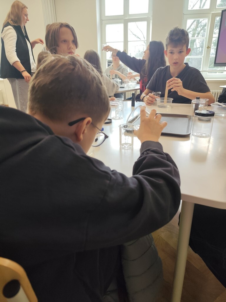 Następnie uczniowie udali się do Collegium Witelona, gdzie uczestniczyli w warsztatach naukowych. Podczas zajęć mieli możliwość samodzielnego wykonywania eksperymentów oraz poznania w praktyce różnych zjawisk naukowych. Warsztaty były nie tylko pouczające, ale również bardzo angażujące i inspirujące.
