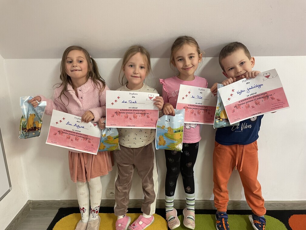Z radością informujemy, że w naszym przedszkolu zakończył się konkurs patriotyczny „Polsko, jestem Ci wdzięczny…”. Celem konkursu było kształtowanie postaw patriotycznych, rozwijanie kreatywności oraz promowanie miłości do Ojczyzny wśród najmłodszych. Dzieci wraz z rodzicami przygotowały piękne prace plastyczne, które zachwyciły kolorami, pomysłowością i wrażliwością. Jury miało bardzo trudne zadanie, ponieważ każda praca była wyjątkowa. Wszystkim uczestnikom serdecznie gratulujemy za zaangażowanie i piękne wyrażenie wdzięczności dla naszej Ojczyzny. Każde dziecko otrzymało dyplom oraz nagrody.