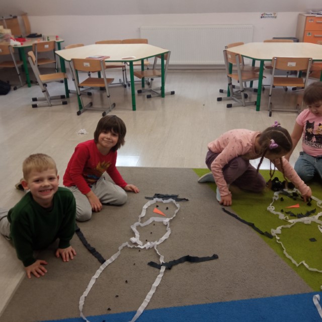 Do grupy uczęszczają bardzo twórcze i kreatywne dzieci. Ostatnio tworzyły bajkę w zespołach i prezentowały swoje umiejętności z wykorzystaniem pacynek koleżankom i kolegom oraz projektowały bałwanka z pasków bibuły. Byłyśmy zaskoczone pomysłowością naszych wychowanków.