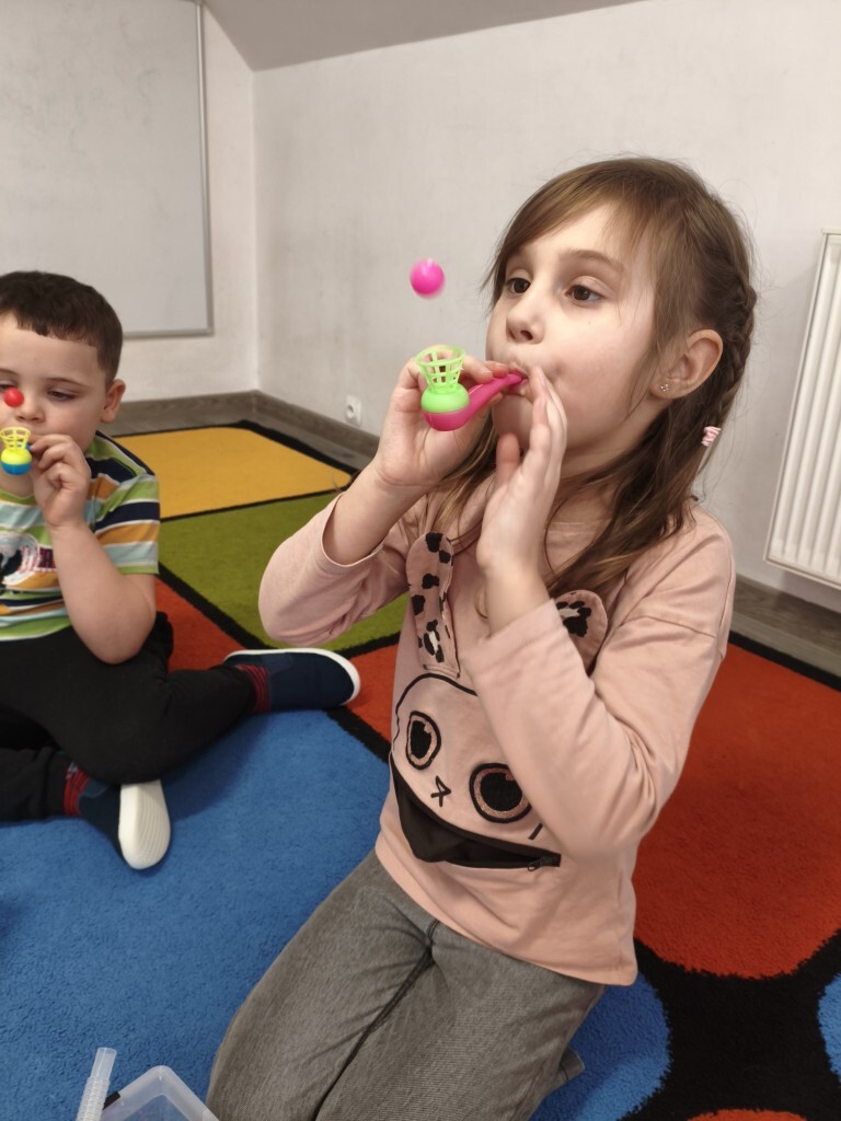 Wiek przedszkolny jest okresem największego rozwoju mowy dziecka ,to w nim najlepiej rozwijać mowę dziecka jak i usuwać wszelkie nieprawidłowości.Przedszkolaki systematycznie uczestniczą w zajęciach logopedycznych. Mają one charakter profilaktyki logopedycznej oraz grupową terapię zaburzeń mowy. Zajęcia to gry i zabawy logopedyczne oraz logorytmiczne, dostosowane do potrzeb i możliwości dziecka, aktywizujące proces mowy, przyczyniając się do rozwoju społecznego.