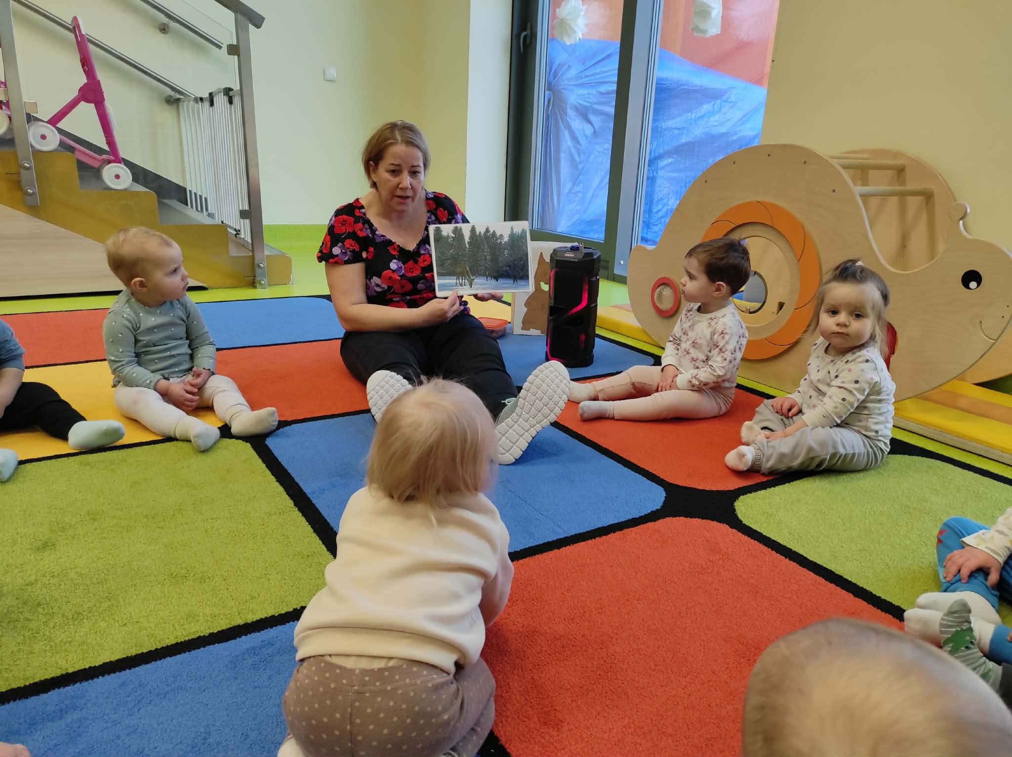 Opiekunka przy pomocy plansz przedstawiła dzieciom ten temat, zwracając uwagę, jaki to trudny dla nich okres, ponieważ śnieżna i lodowa pokrywa często uniemożliwia dotarcie do pożywienia jakim są korzonki , trawy, kasztany czy żołędzie.