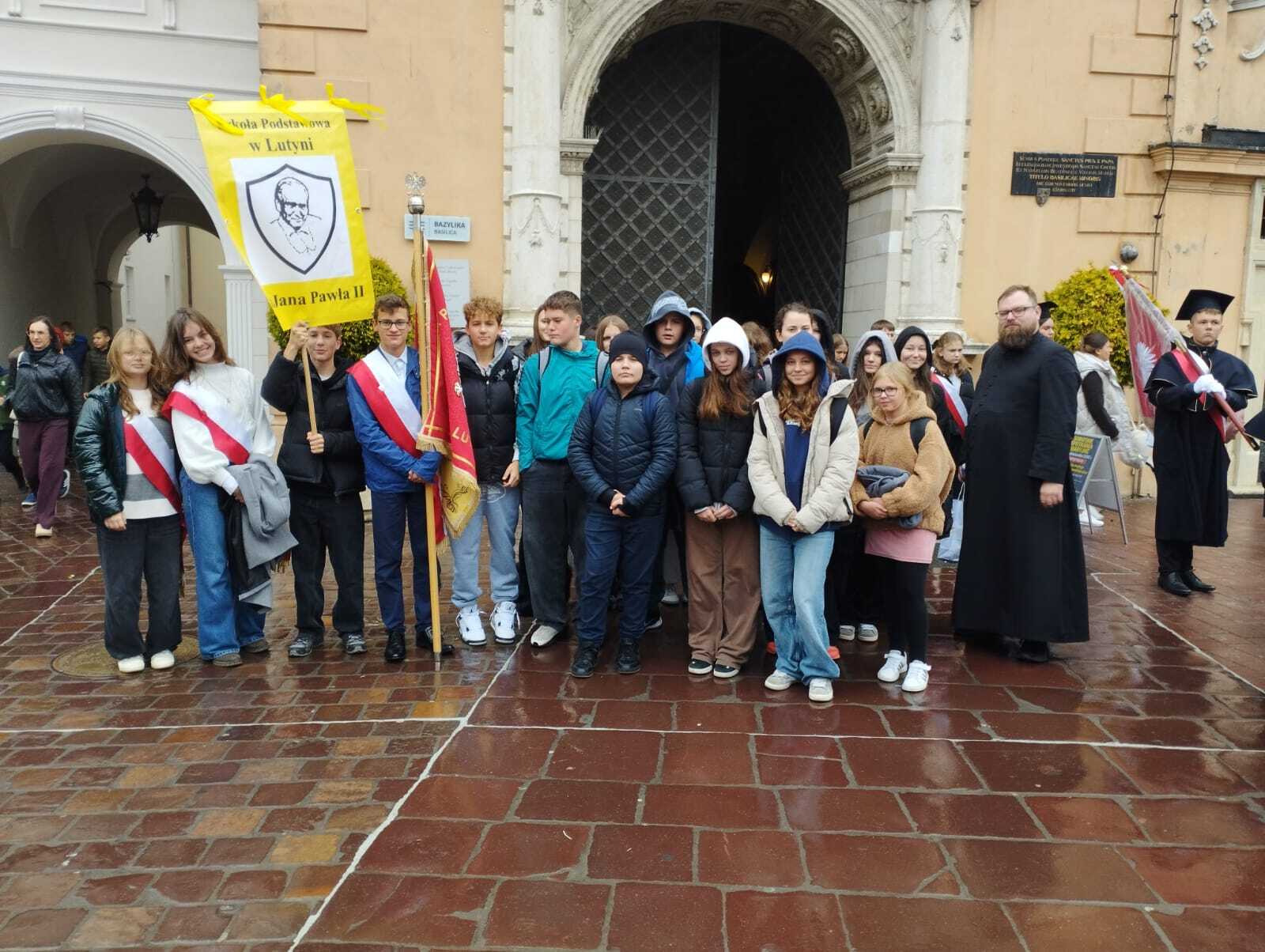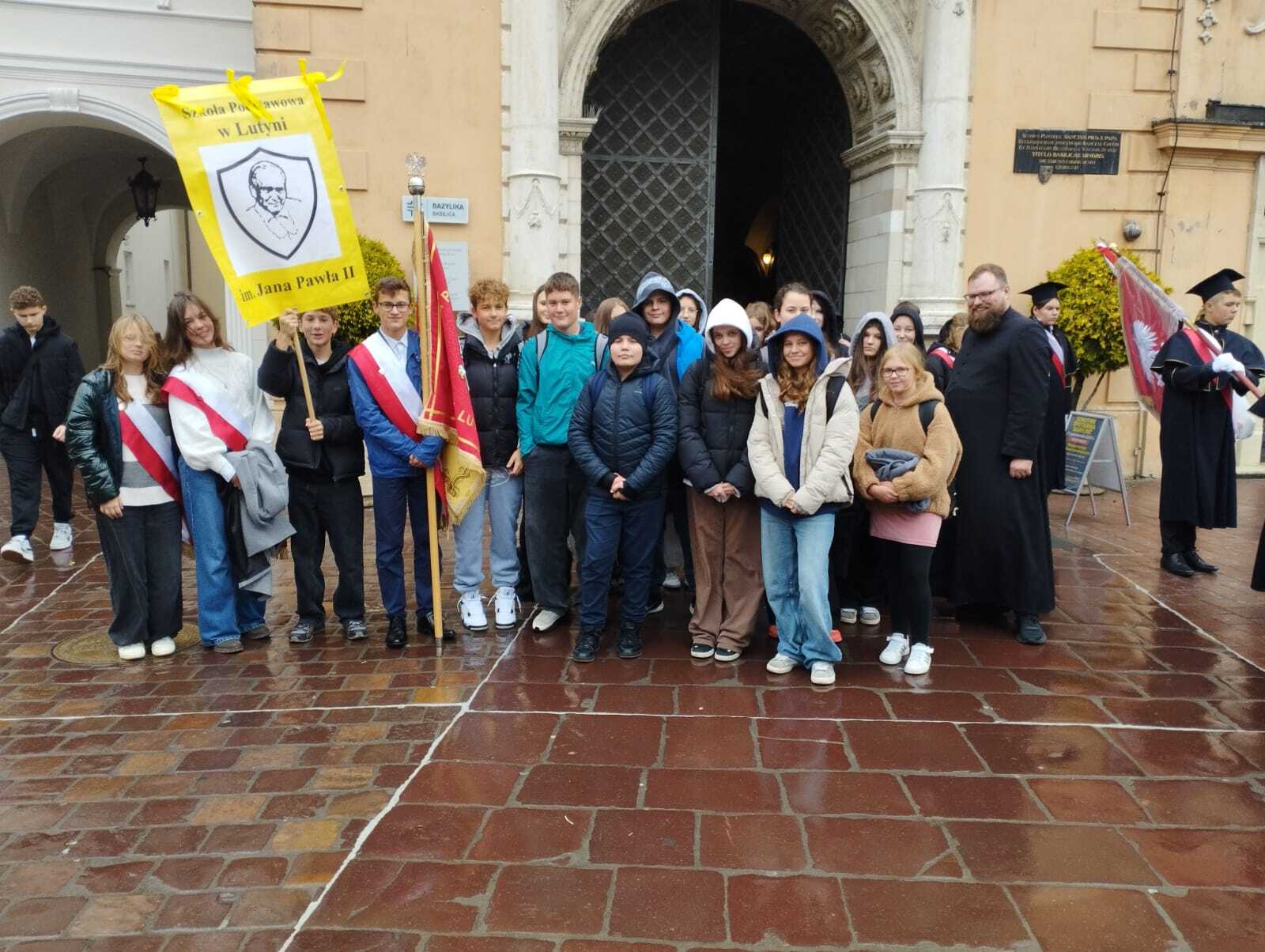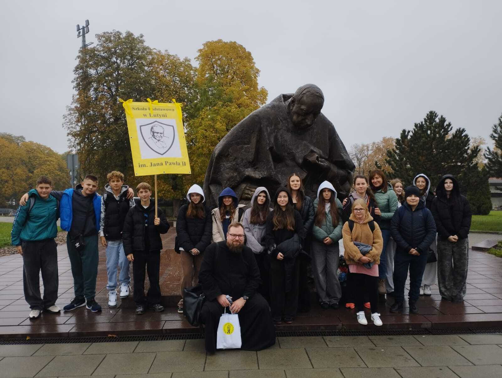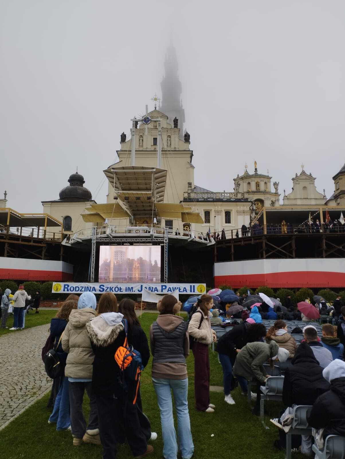 W czwartek 9 października reprezentacja z naszej Szkoły, z klas 7 i 8 pojechała do Częstochowy, na Jasną Górę, by wspólnie z innymi uczniami, którym patronuje św. Jan Paweł II uczestniczyć we Mszy świętej. Oprócz wydarzenia duchowego i wzajemnej integracji nasza młodzież miała szansę zobaczyć niezwykłe miejsce związane z historią. Jasna Góra dała się poznać jako Duchowa Stolica Polski jak również jako miejsce historycznego zwycięstwa nad wojskami szwedzkimi w 1655r. Uczniowie zwiedzali Bazylikę Jasnogórską z kaplicą Cudownego Obrazu, skarbiec oraz muzeum. Kilkoro uczniów zdecydowało się nawet na przejście wokół ołtarza Matki Bożej na kolanach w swoich własnych intencjach.