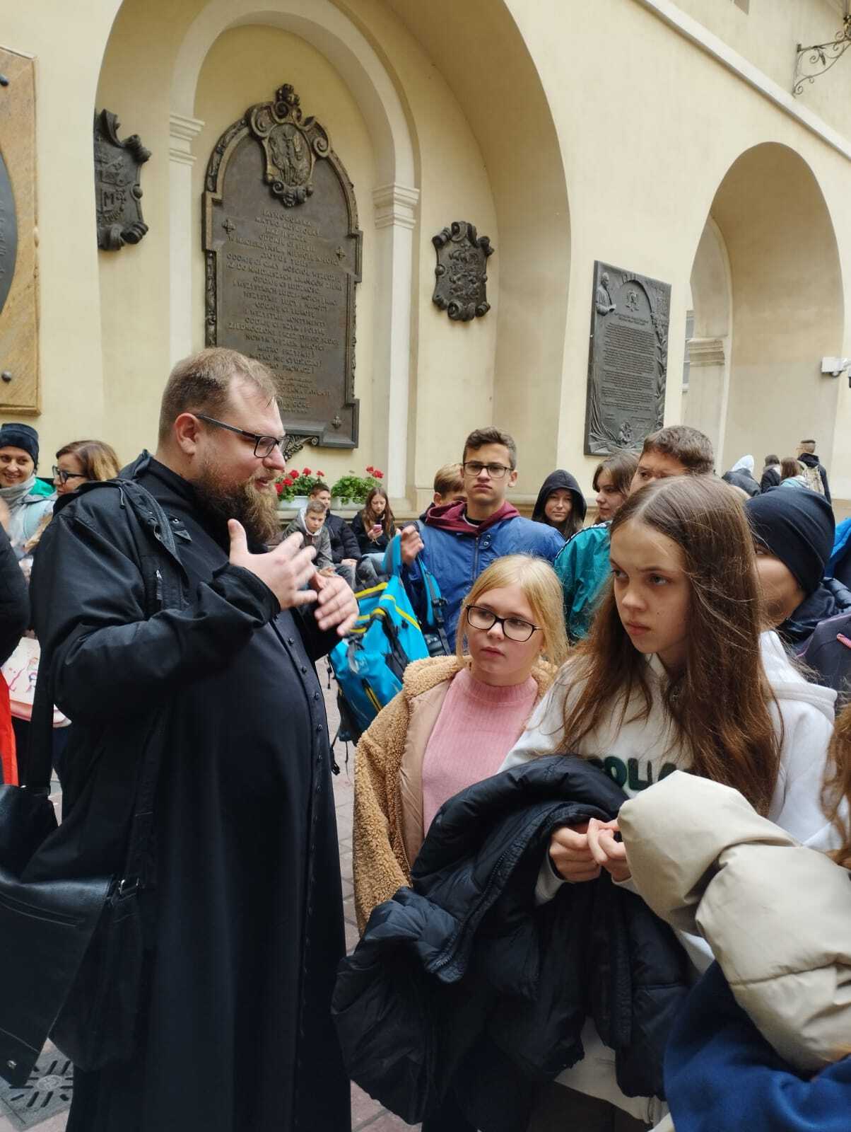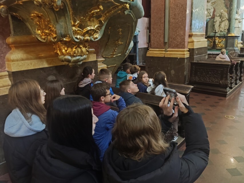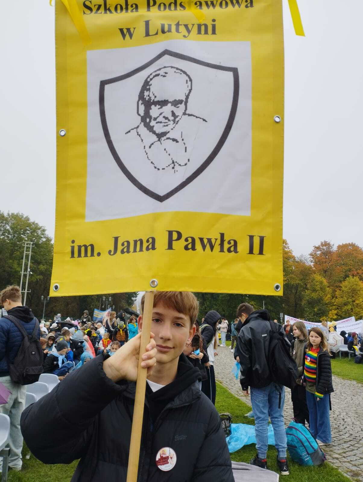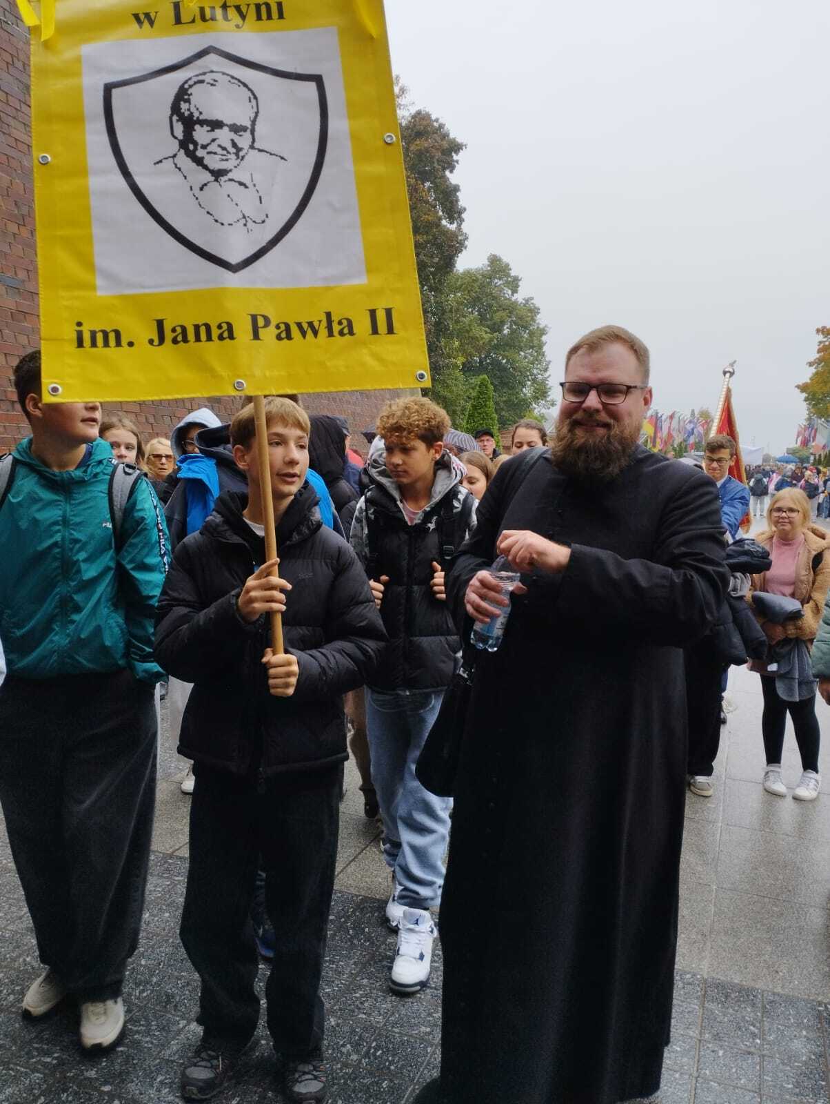 W czwartek 9 października reprezentacja z naszej Szkoły, z klas 7 i 8 pojechała do Częstochowy, na Jasną Górę, by wspólnie z innymi uczniami, którym patronuje św. Jan Paweł II uczestniczyć we Mszy świętej. Oprócz wydarzenia duchowego i wzajemnej integracji nasza młodzież miała szansę zobaczyć niezwykłe miejsce związane z historią. Jasna Góra dała się poznać jako Duchowa Stolica Polski jak również jako miejsce historycznego zwycięstwa nad wojskami szwedzkimi w 1655r. Uczniowie zwiedzali Bazylikę Jasnogórską z kaplicą Cudownego Obrazu, skarbiec oraz muzeum. Kilkoro uczniów zdecydowało się nawet na przejście wokół ołtarza Matki Bożej na kolanach w swoich własnych intencjach.