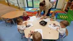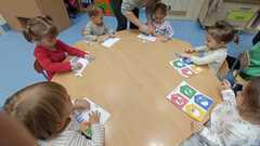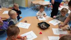 W minionym tygodniu dzieci z grupy Myszek miały okazję zapoznać się ze zwyczajami i zasadami opieki nad zwierzętami domowymi, szczególnie psem i kotem. Przy okazji wykonywania prac plastycznych dzieci poznały kolory, uczyły się układać czteroelementowe puzzle oraz ćwiczyły zmysł dotyku wyklejając kotka za pomocą wełny.
